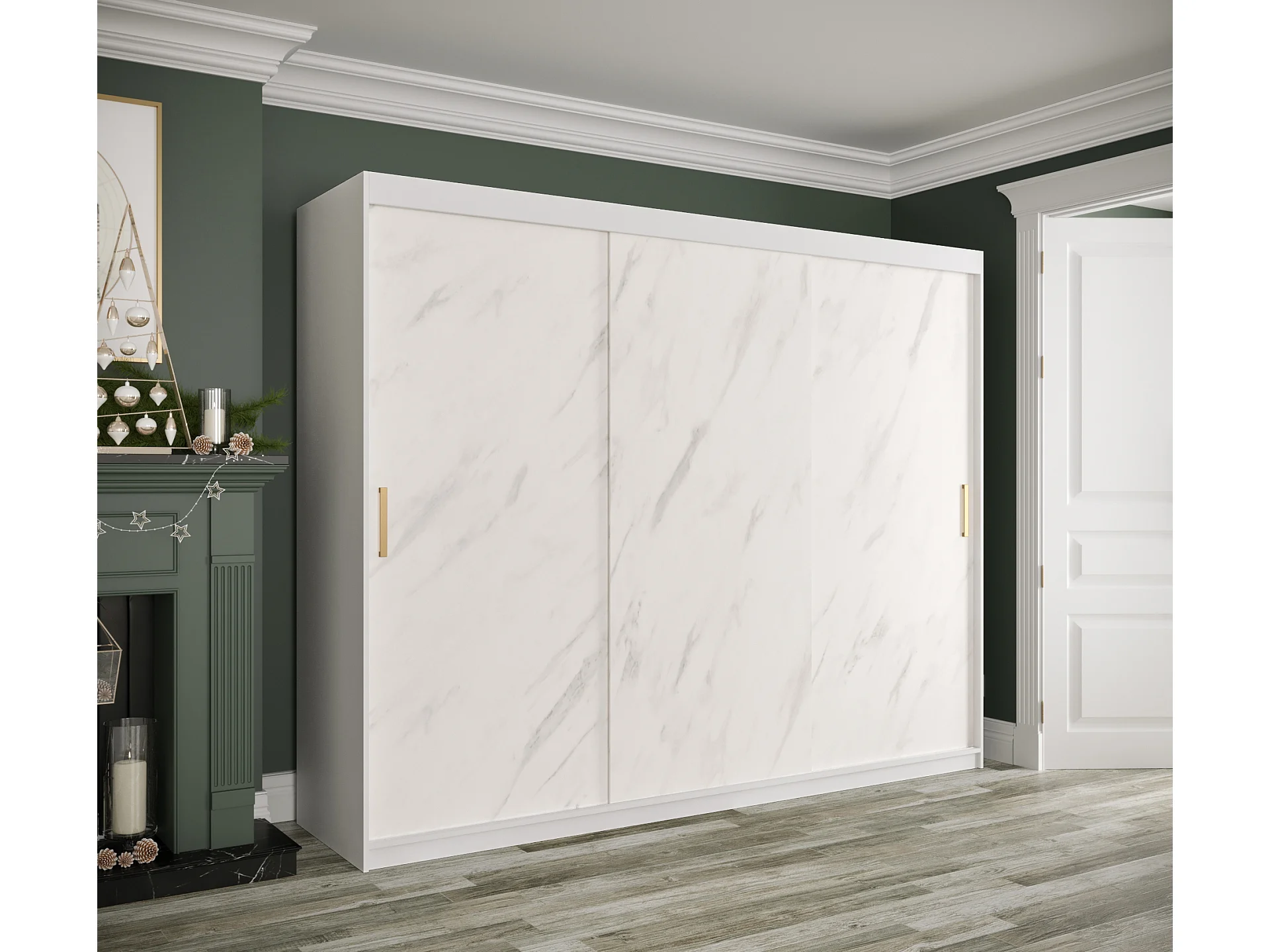 Armoire à portes coulissantes Marmur T 200/250/62 (Blanc)
