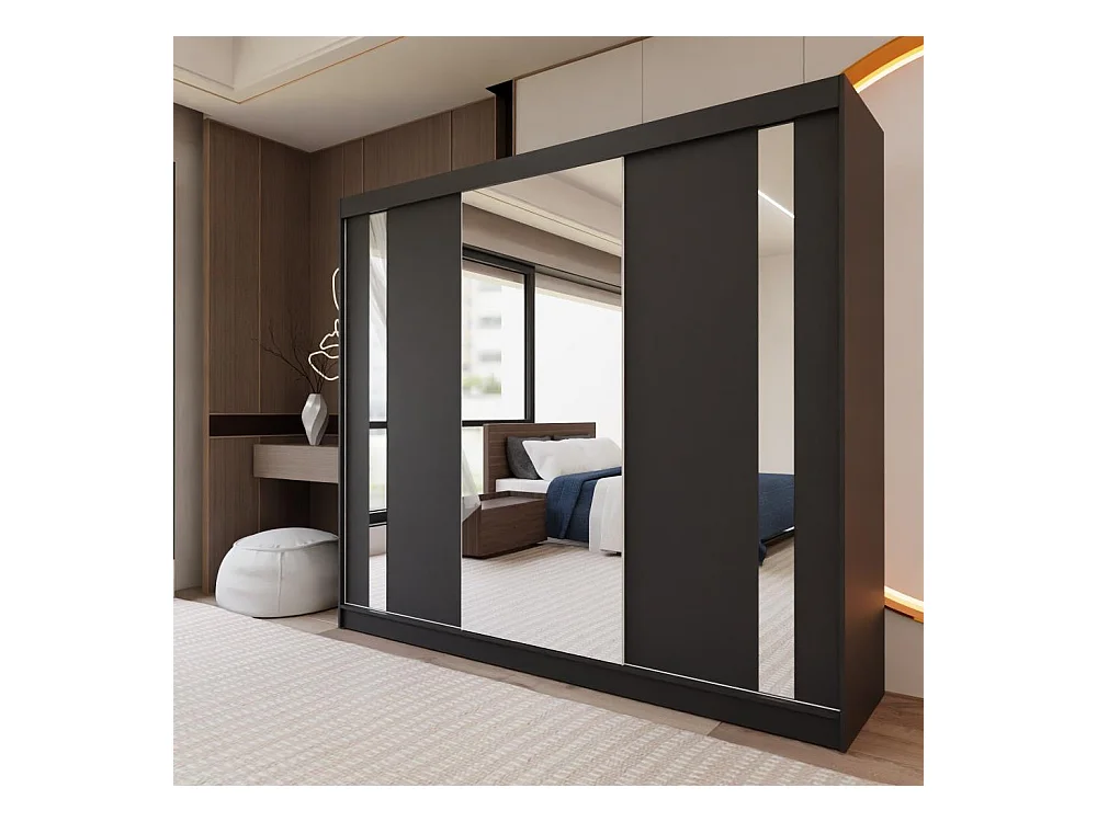 ARMOIRE A PORTES FERMÉES Gaja 240/216/61 noir avec miroir et inserts de tiroirs