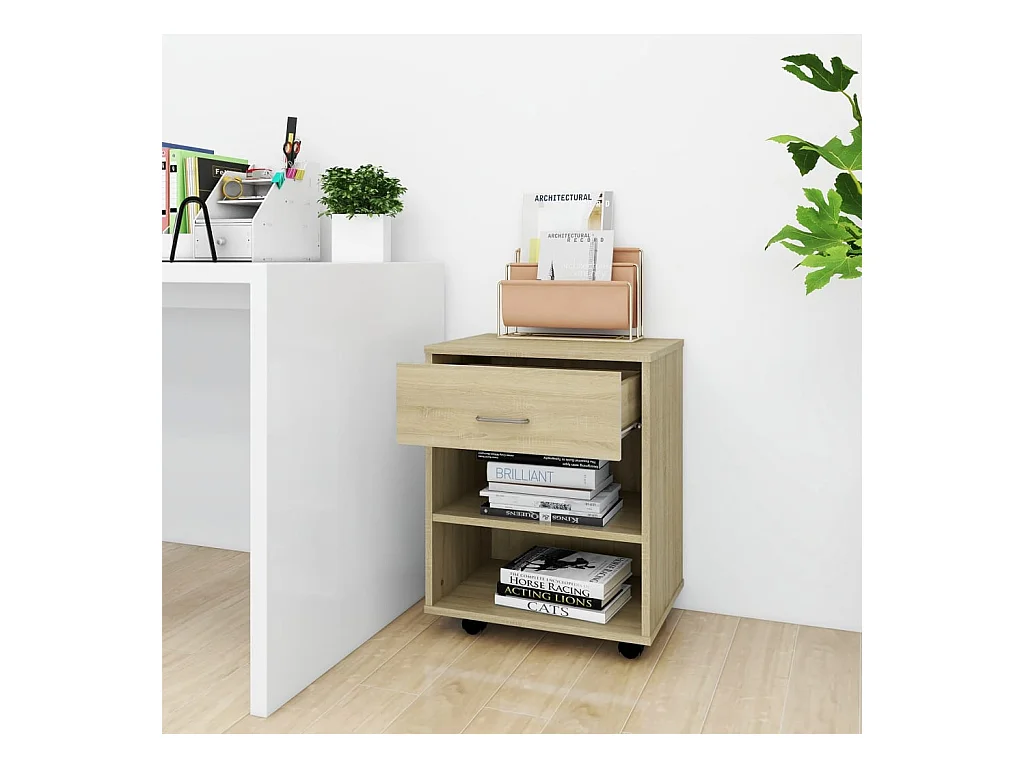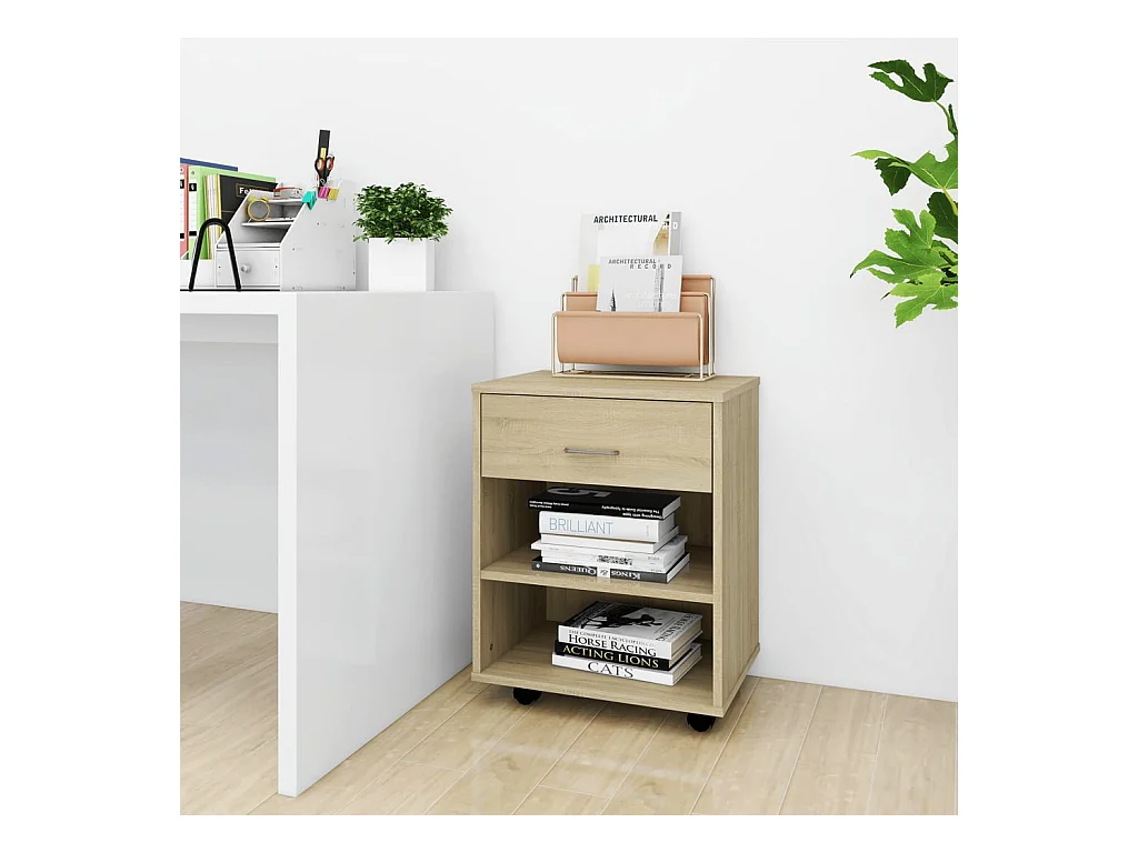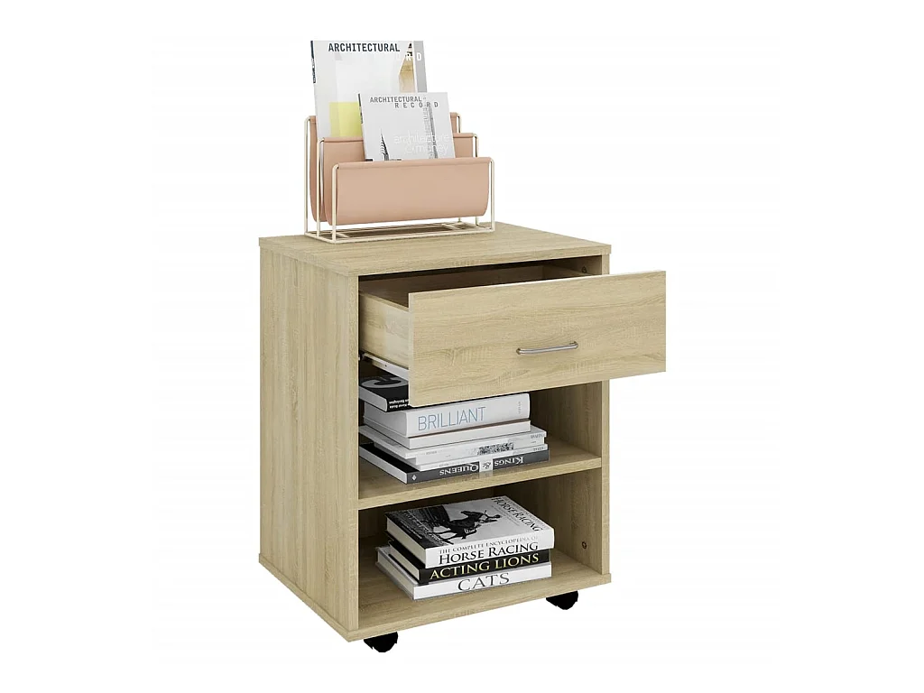 Armoire roulante avec tiroirs MOSS bois de pin marron miel