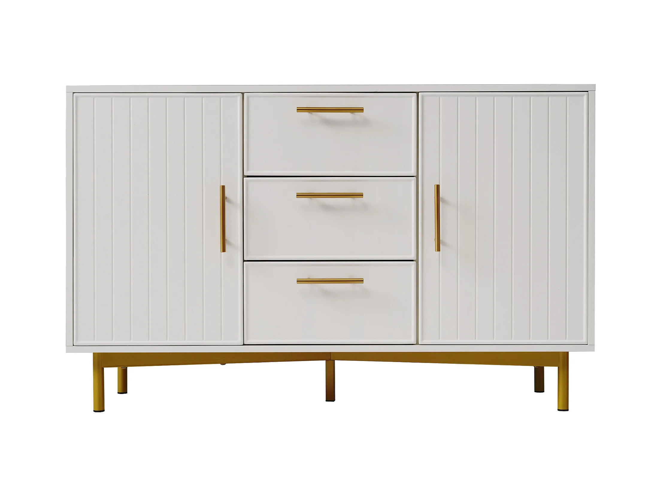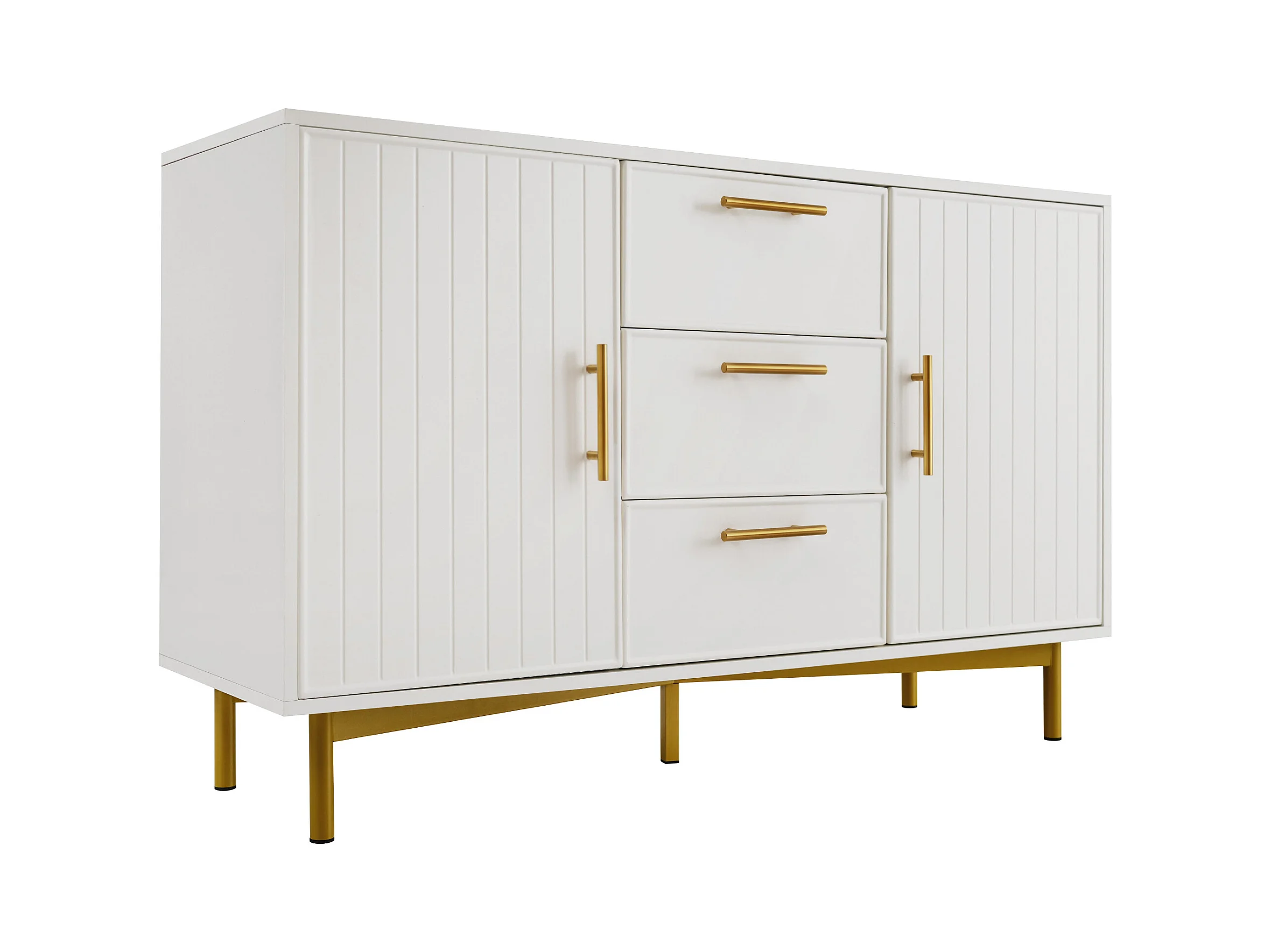 Armoire à tiroirs avec 2 portes et 3 tiroirs, étagère réglable, pour salon chambre, blanc - h75 / B120 / T40 cm