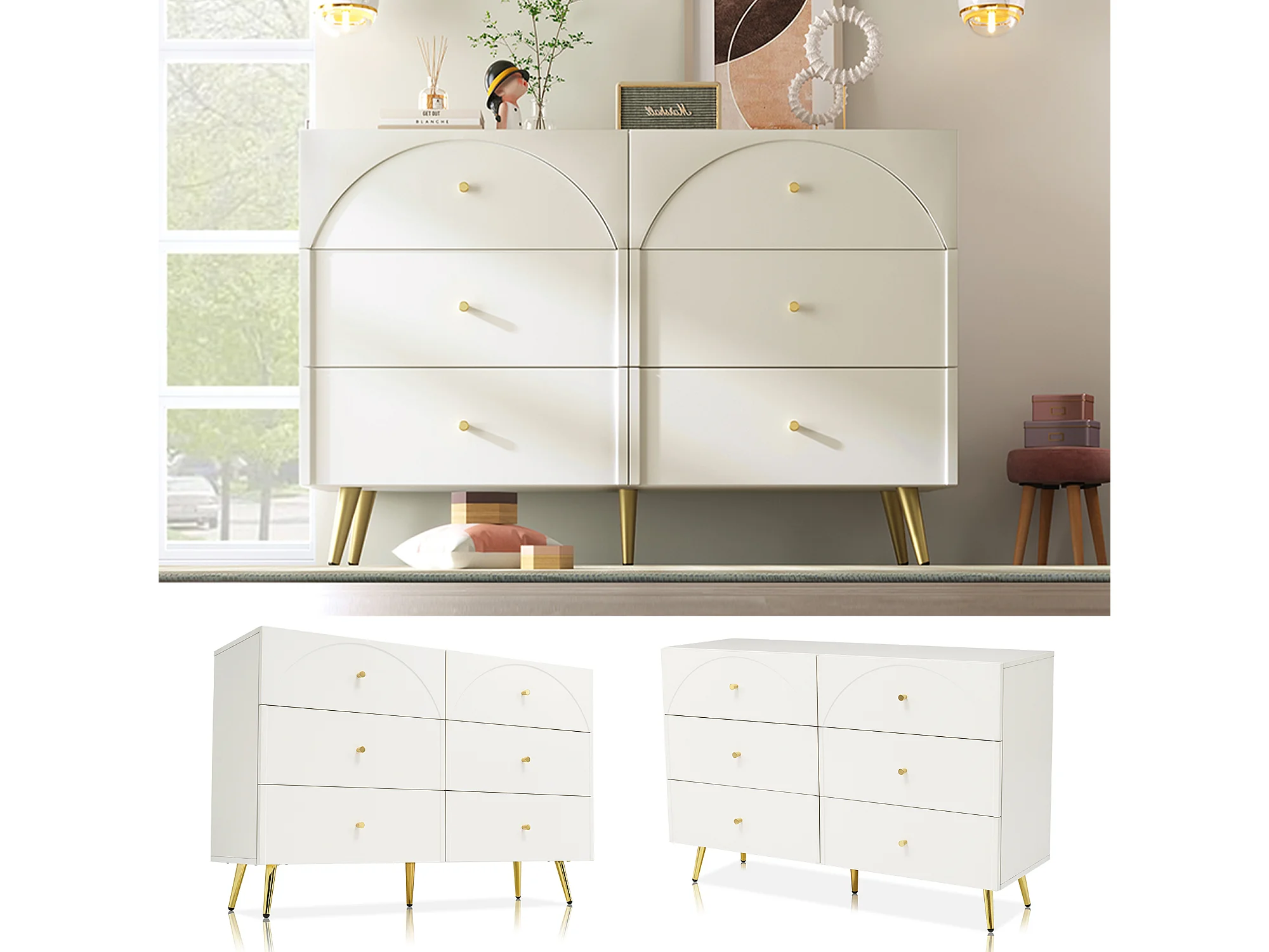 Armoire à tiroirs laiteux avec 6 tiroirs, buffet plateau haut pour chambre et tous les espaces de vie - h85 / B120 / T40 cm