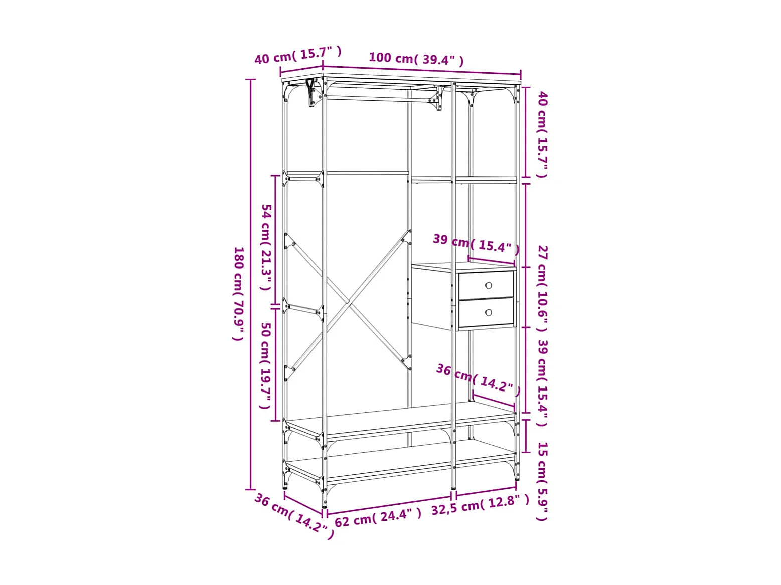 Armoire à tiroirs sonoma gris 100x40x180 cm bois d'ingénierie