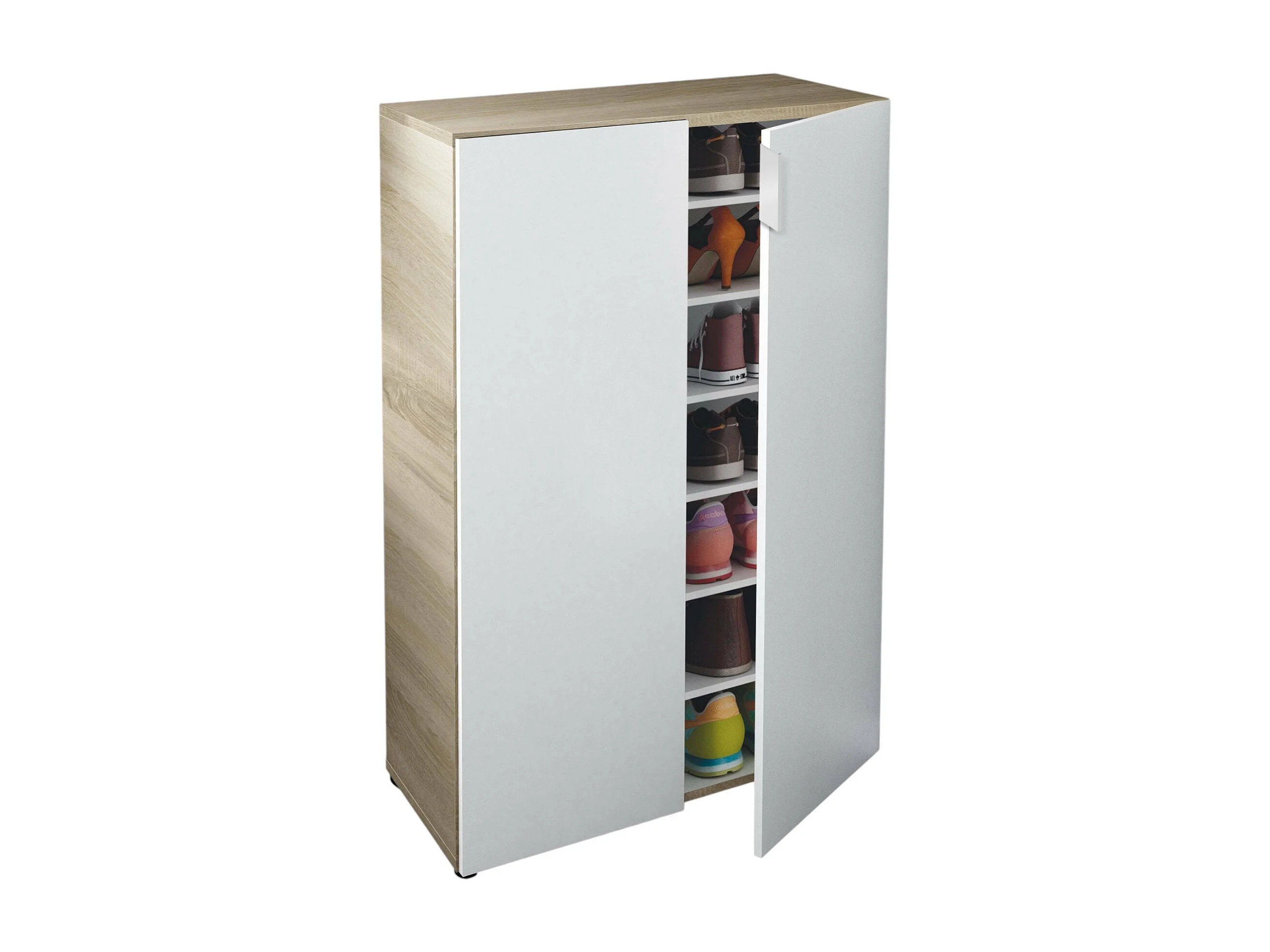 Armoire polyvalente Dlel, Armoire auxiliaire avec 2 portes, Armoire à chaussures basse avec 6 étagères, Étagère à chaussures basse, 70x36h103 cm, Chêne et Blanc