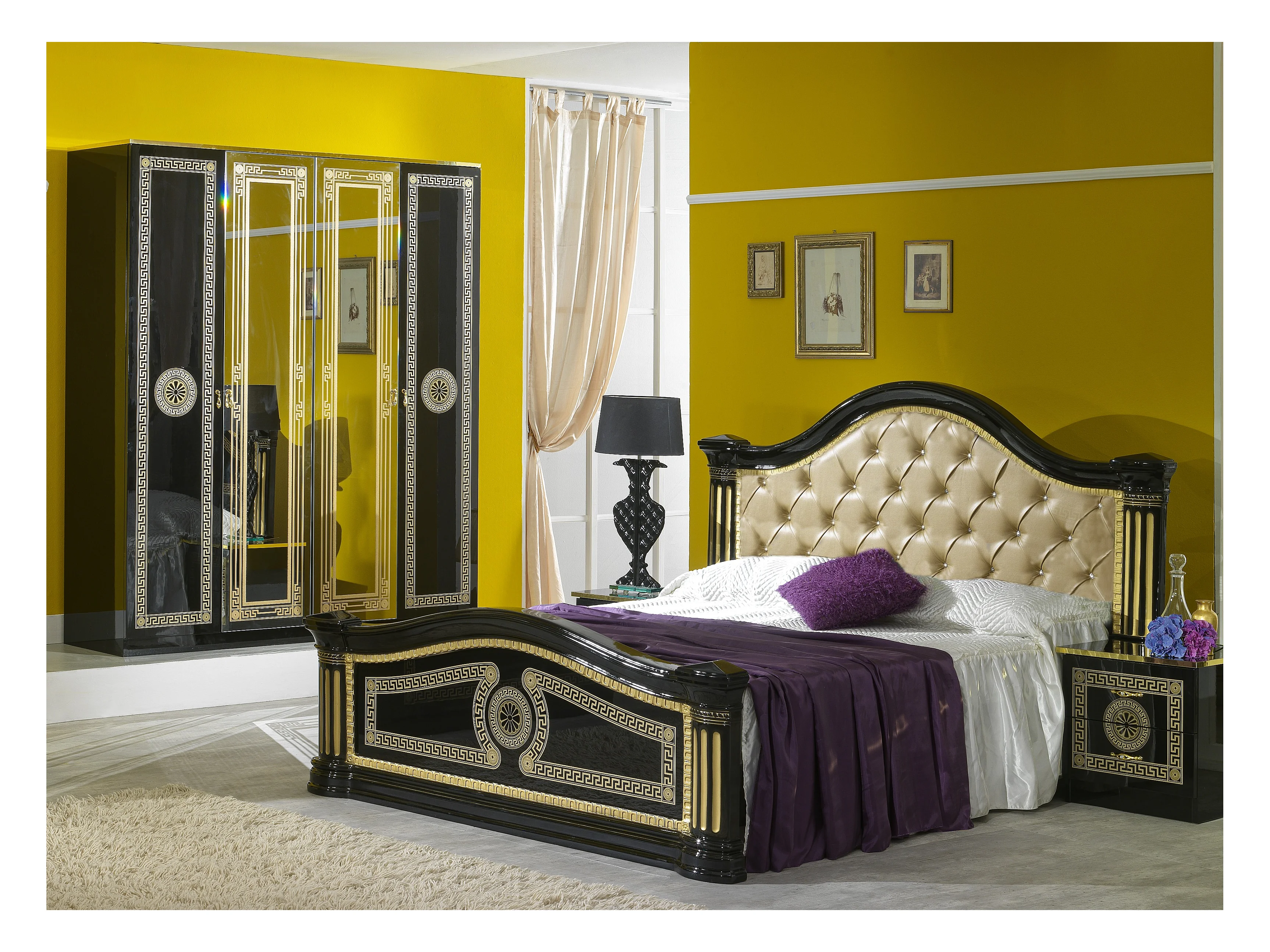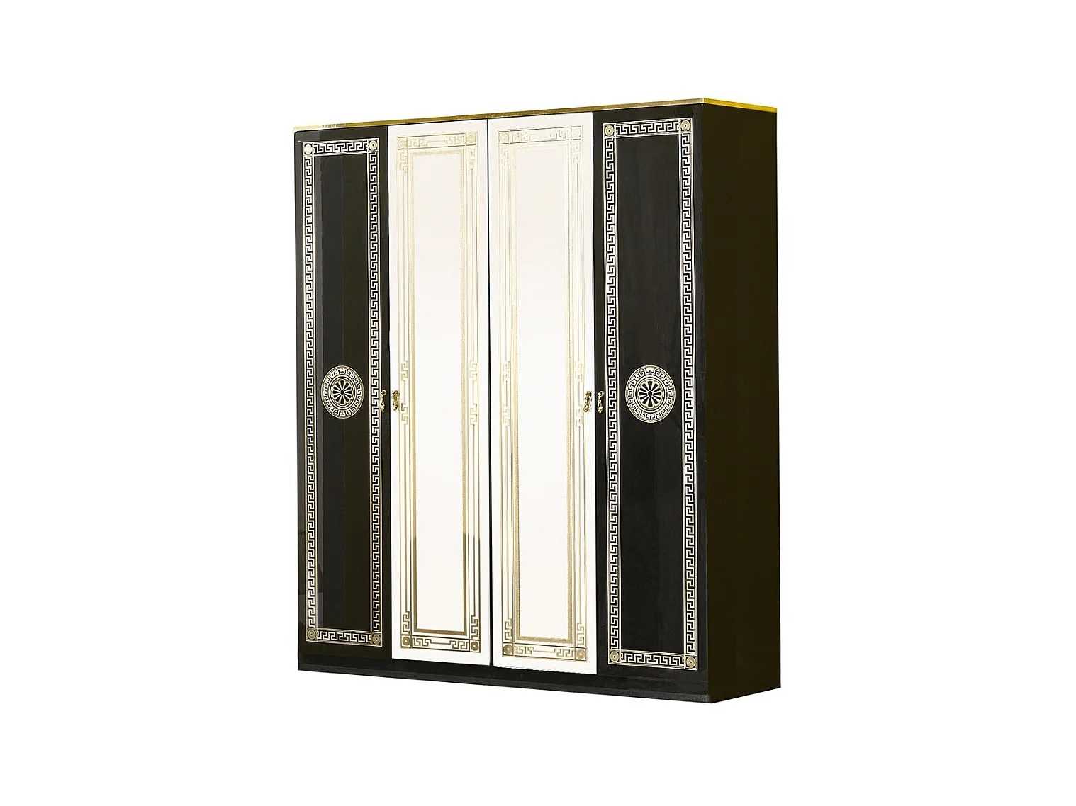 Armoire adulte 4 portes 2 avec miroirs laqué noir et doré Savana 181cm