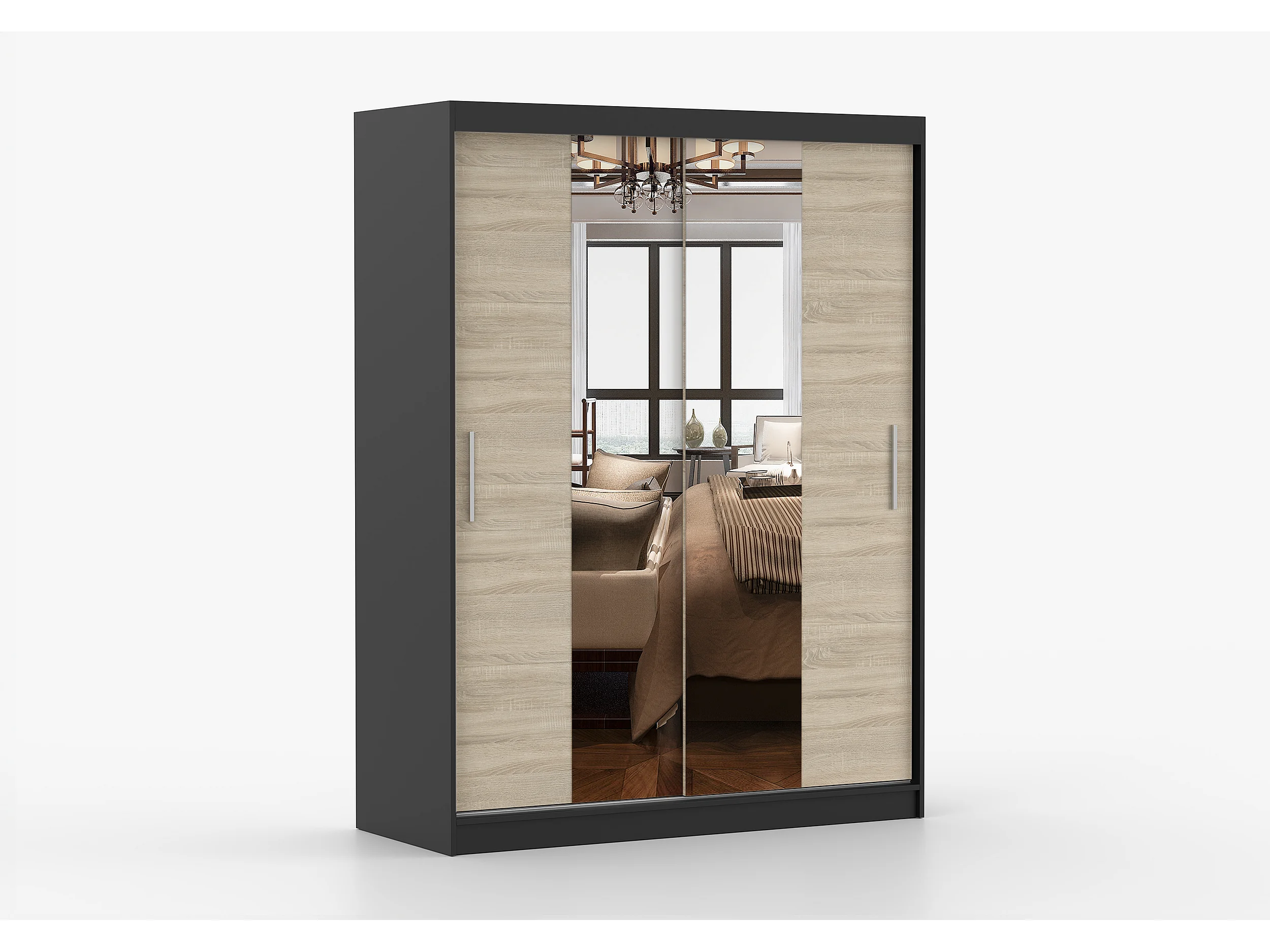 Armoire Aenora 150 cm avec miroir - Noir - Chêne