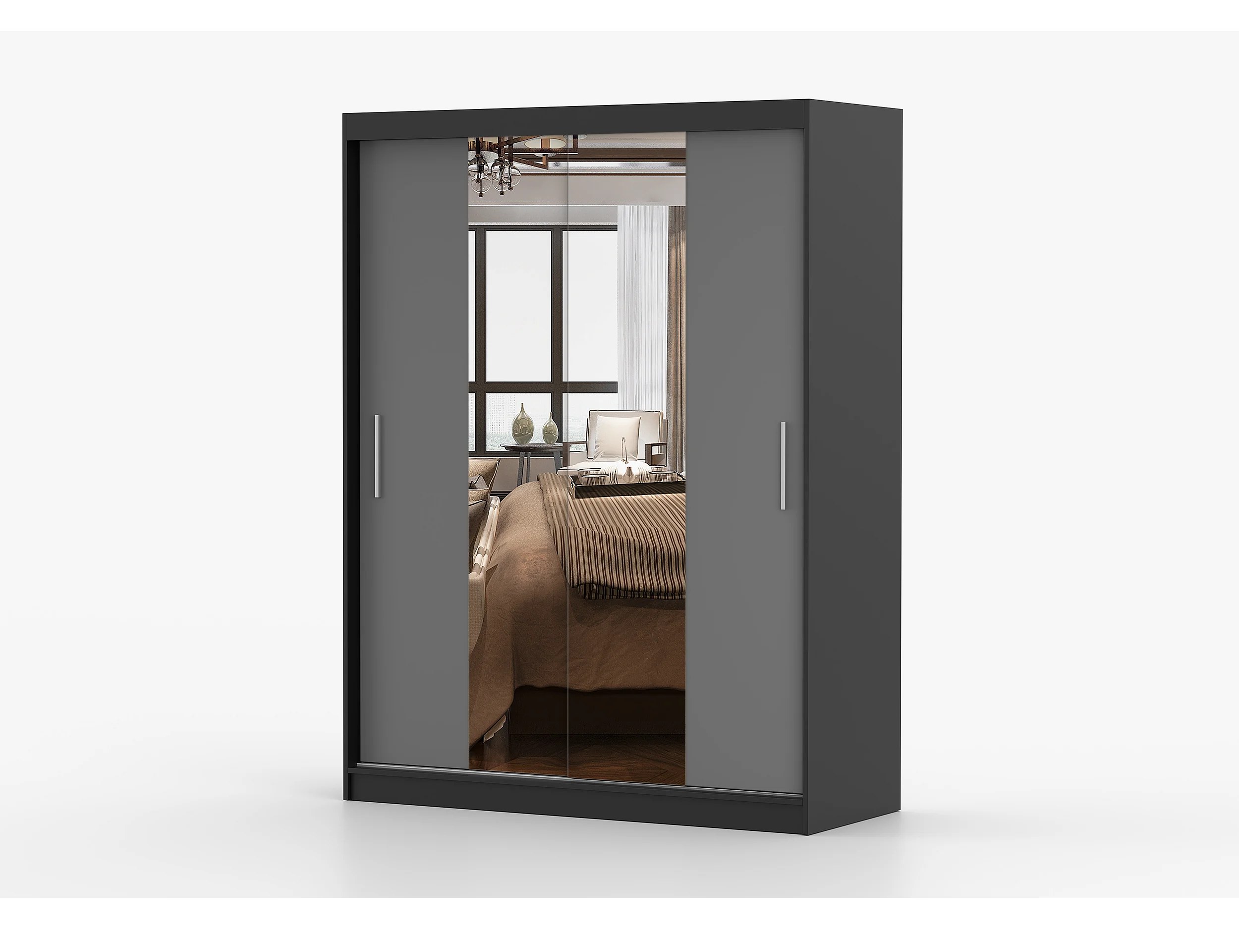 Armoire Aenora 150 cm avec miroir - Noir - Gris