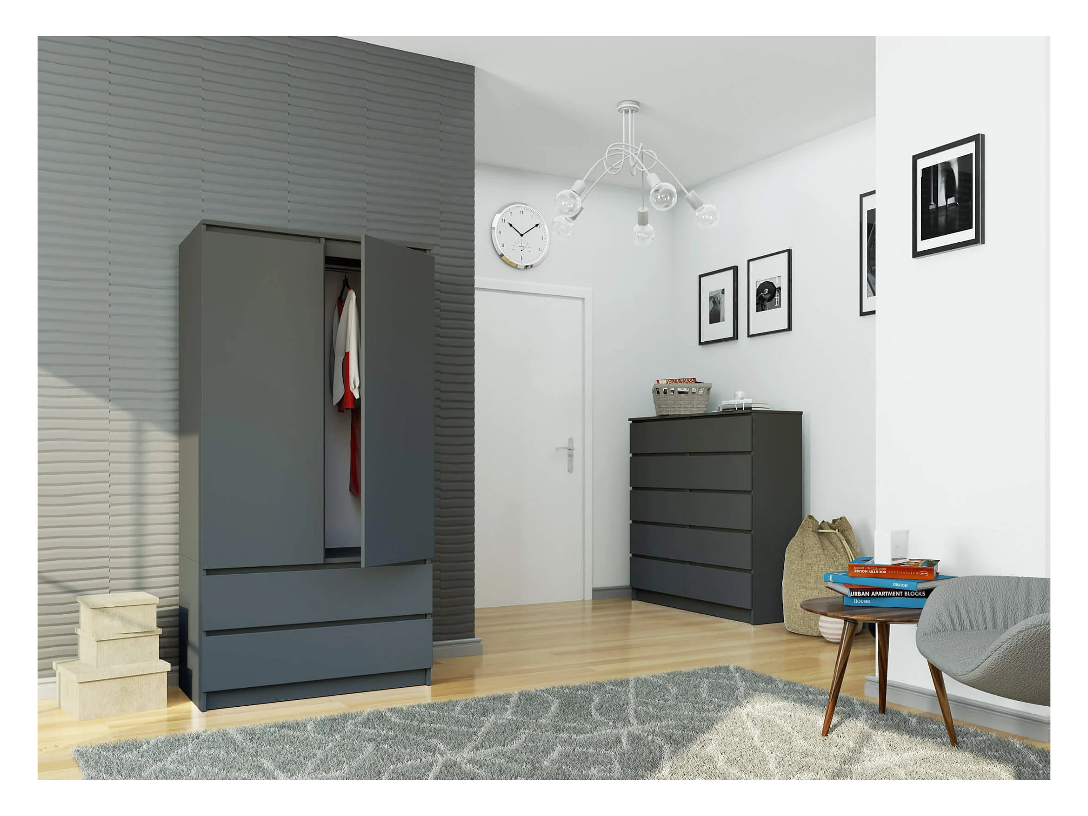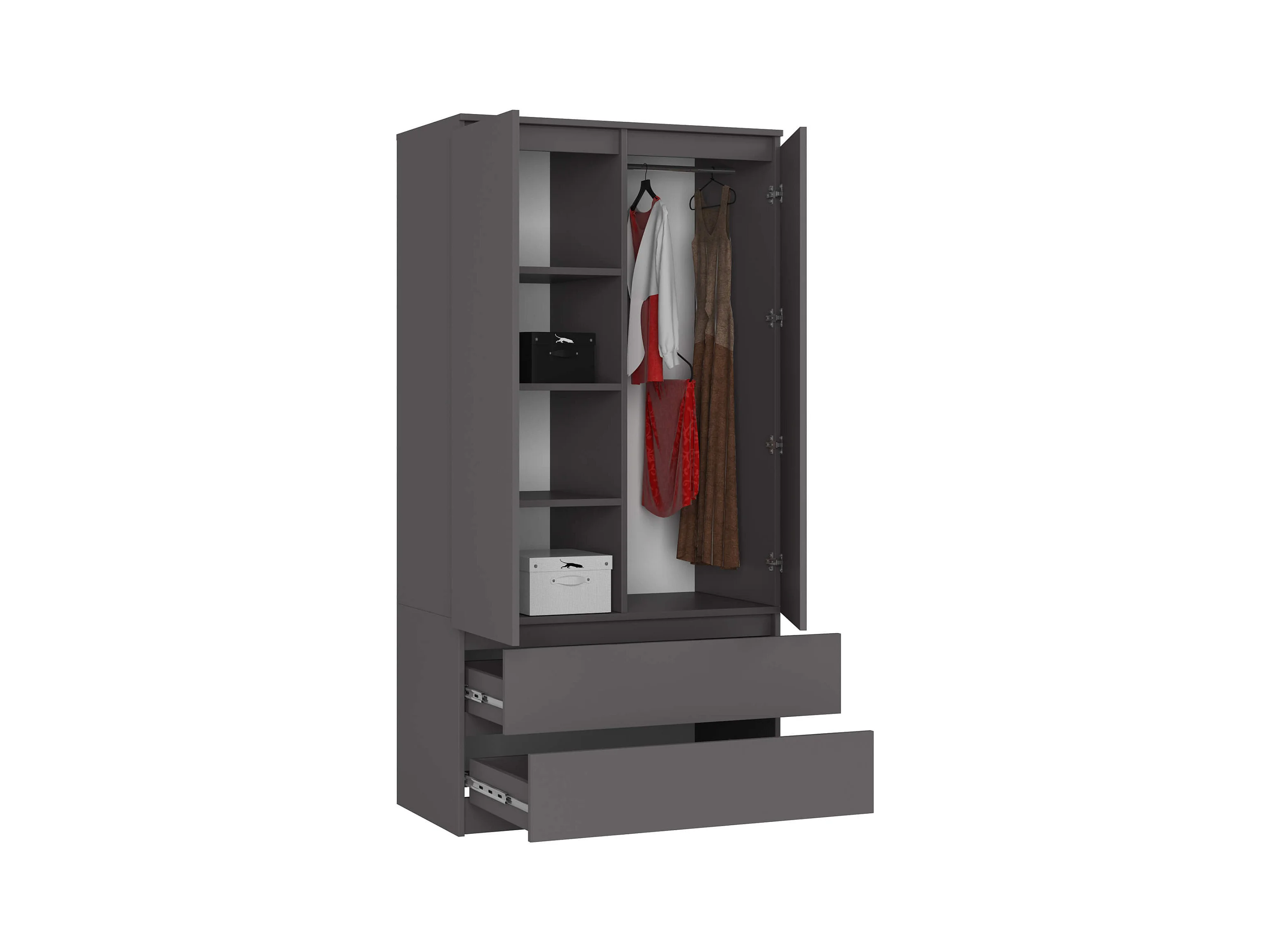 Armoire AKORD S90 Gris Graphite 90 cm 2 portes 2 tiroirs façade Gris Graphite 4 étagères 90x51x180 cm