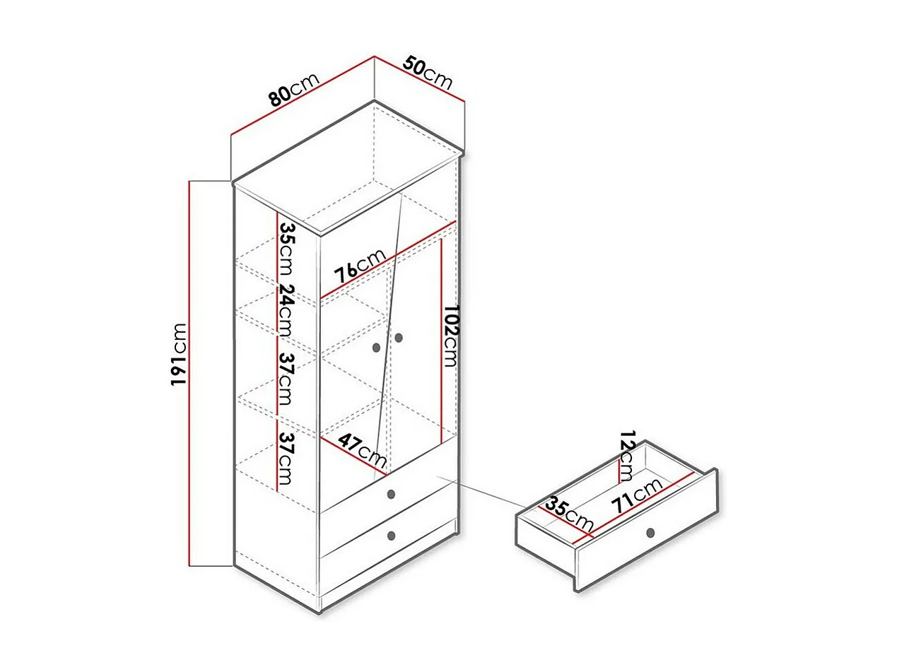 Armoire Almira 100, Blanc|Chêne Artisan|Gris, 191x80x50cm, Nombre d'étagères: 3