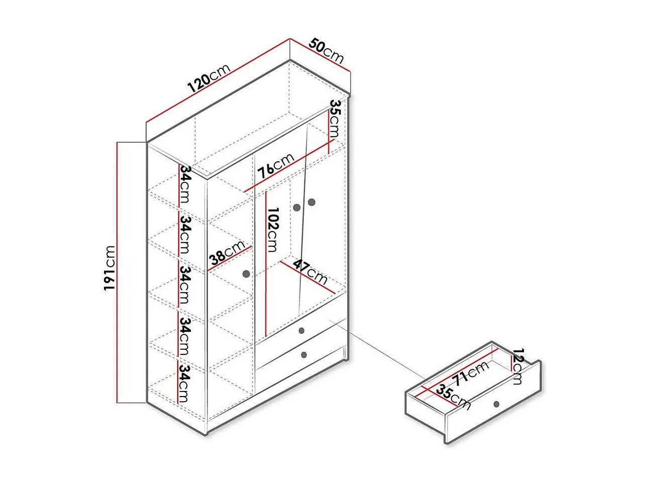 Armoire Almira 102, Blanc|Chêne Artisan, 191x120x50cm, Nombre d'étagères: 5