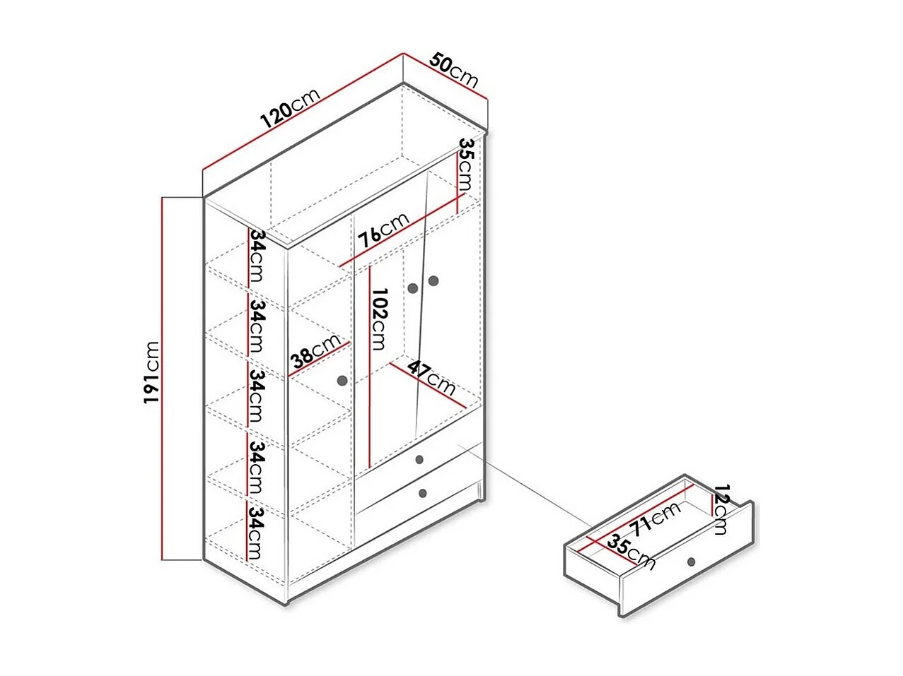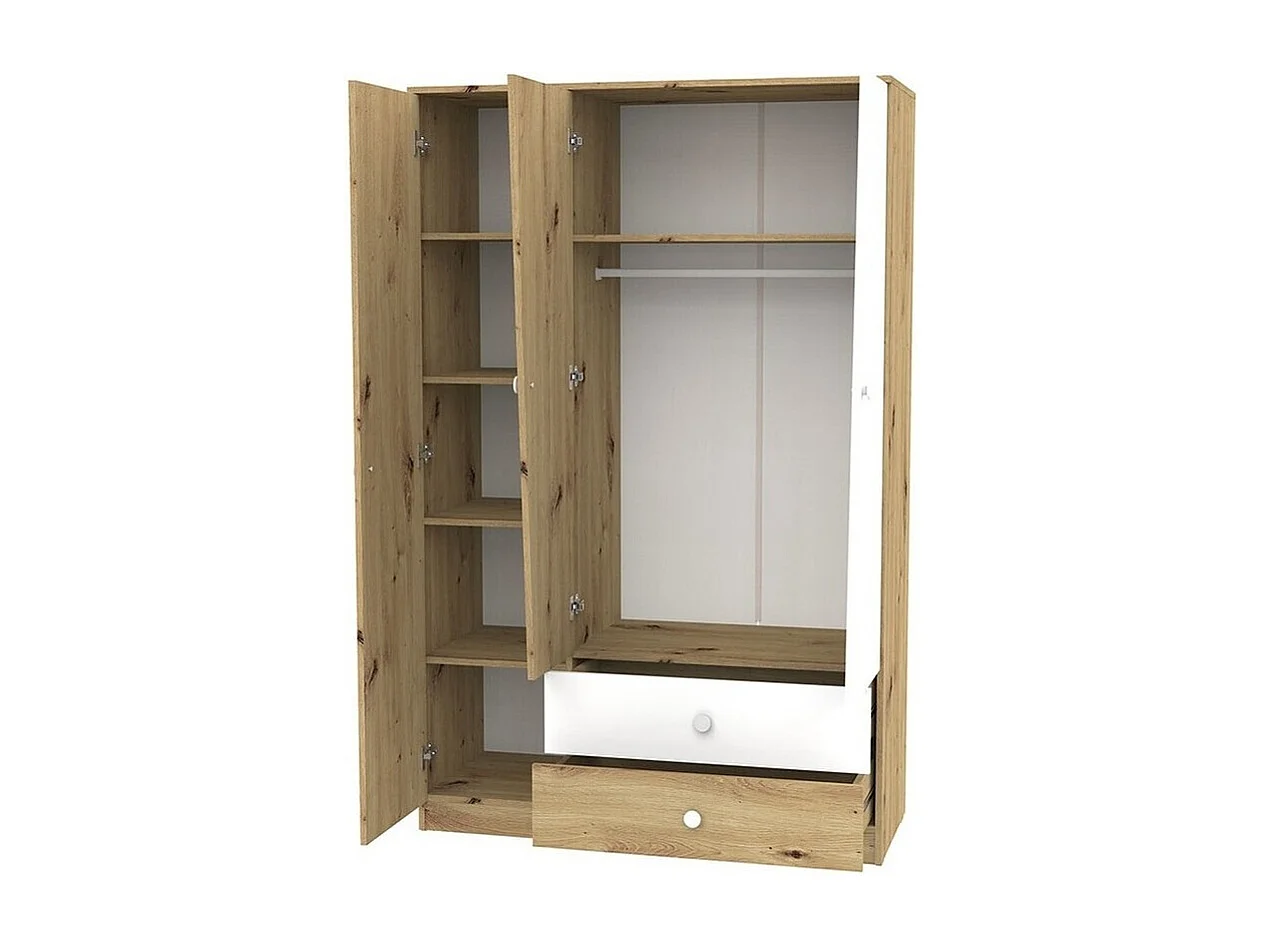 Armoire Almira 102, Blanc|Chêne Artisan|Gris, 191x120x50cm, Nombre d'étagères: 5