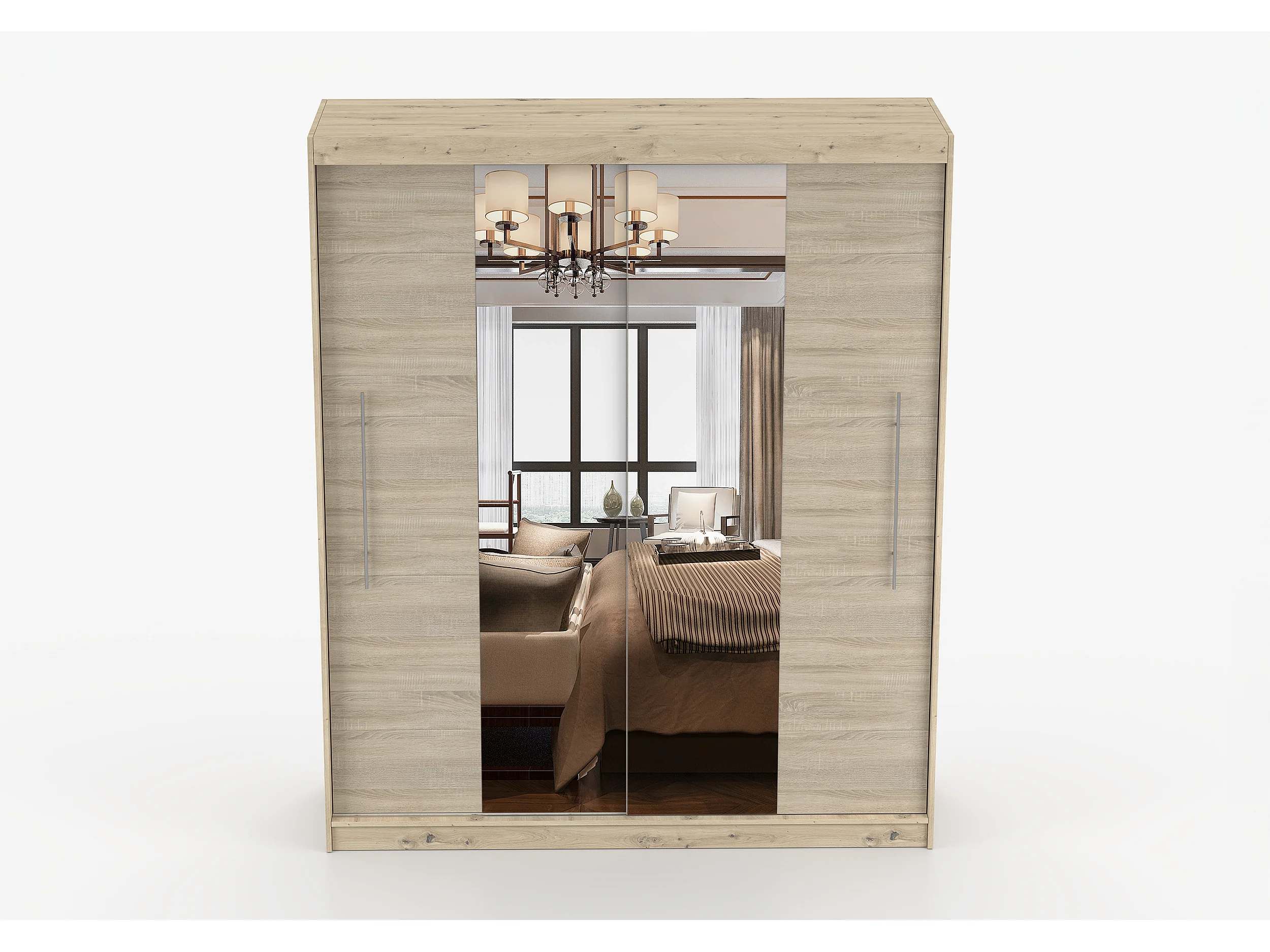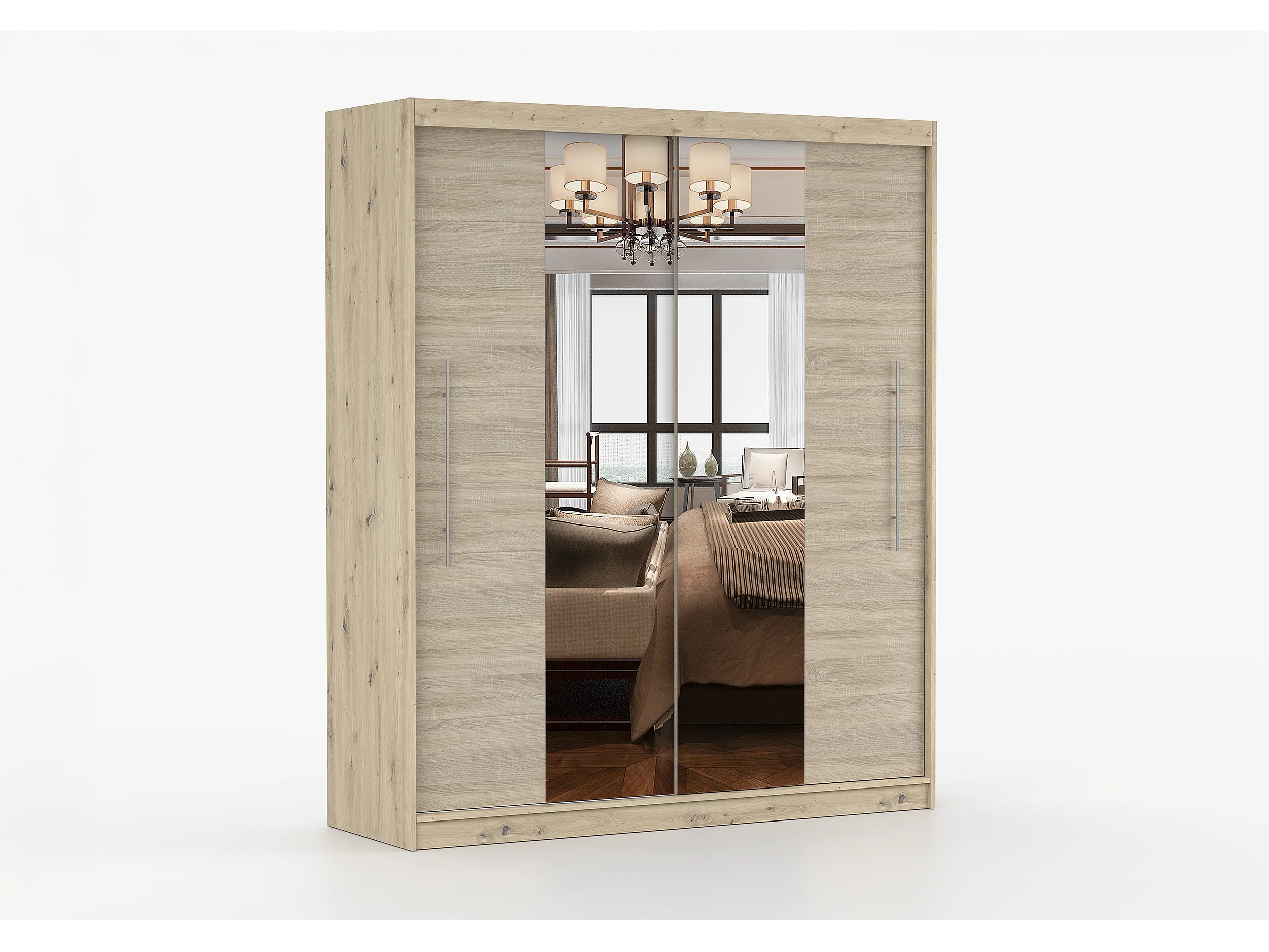 Armoire Althéa 203 cm avec miroir - Effet bois - Chêne