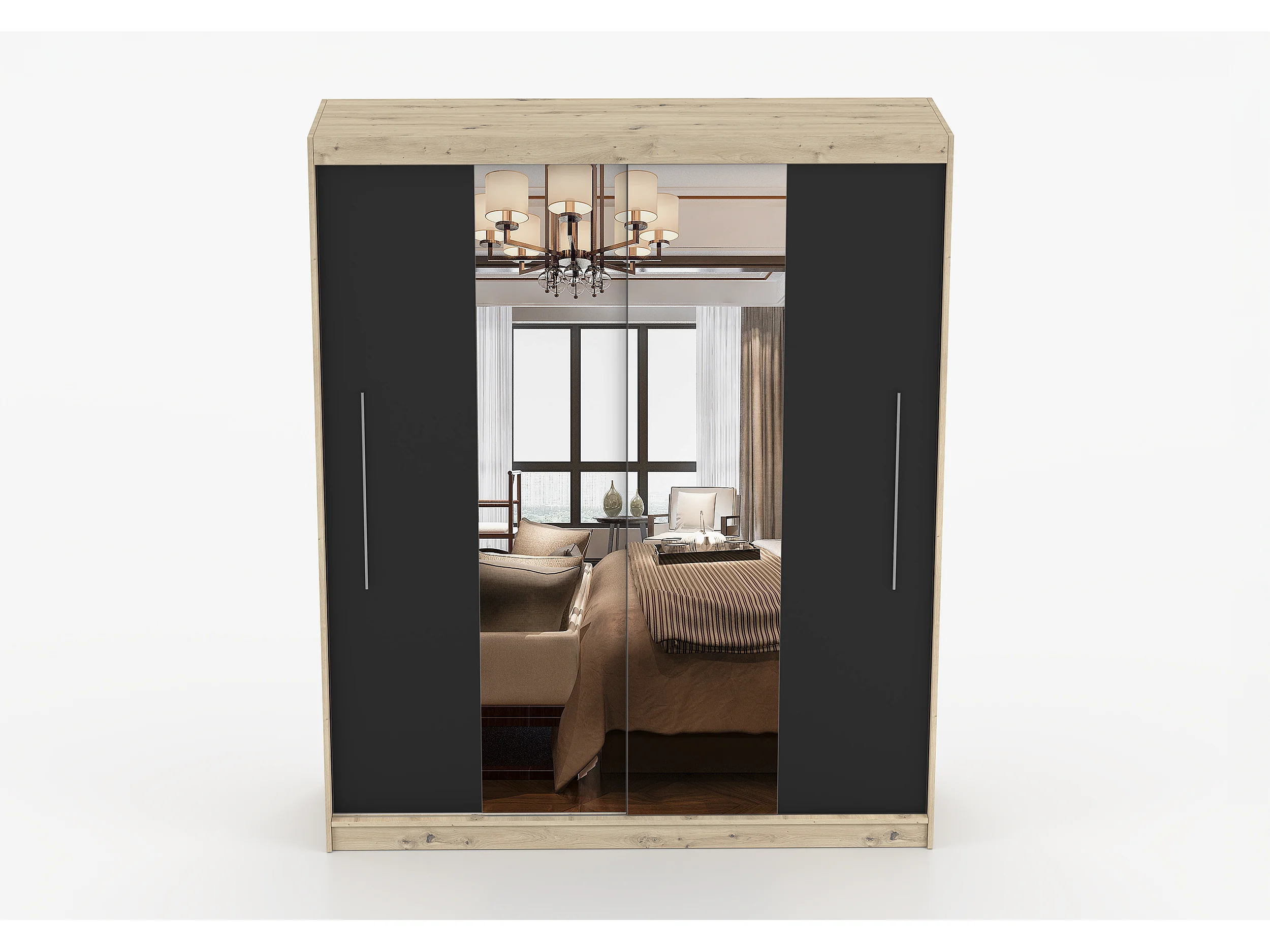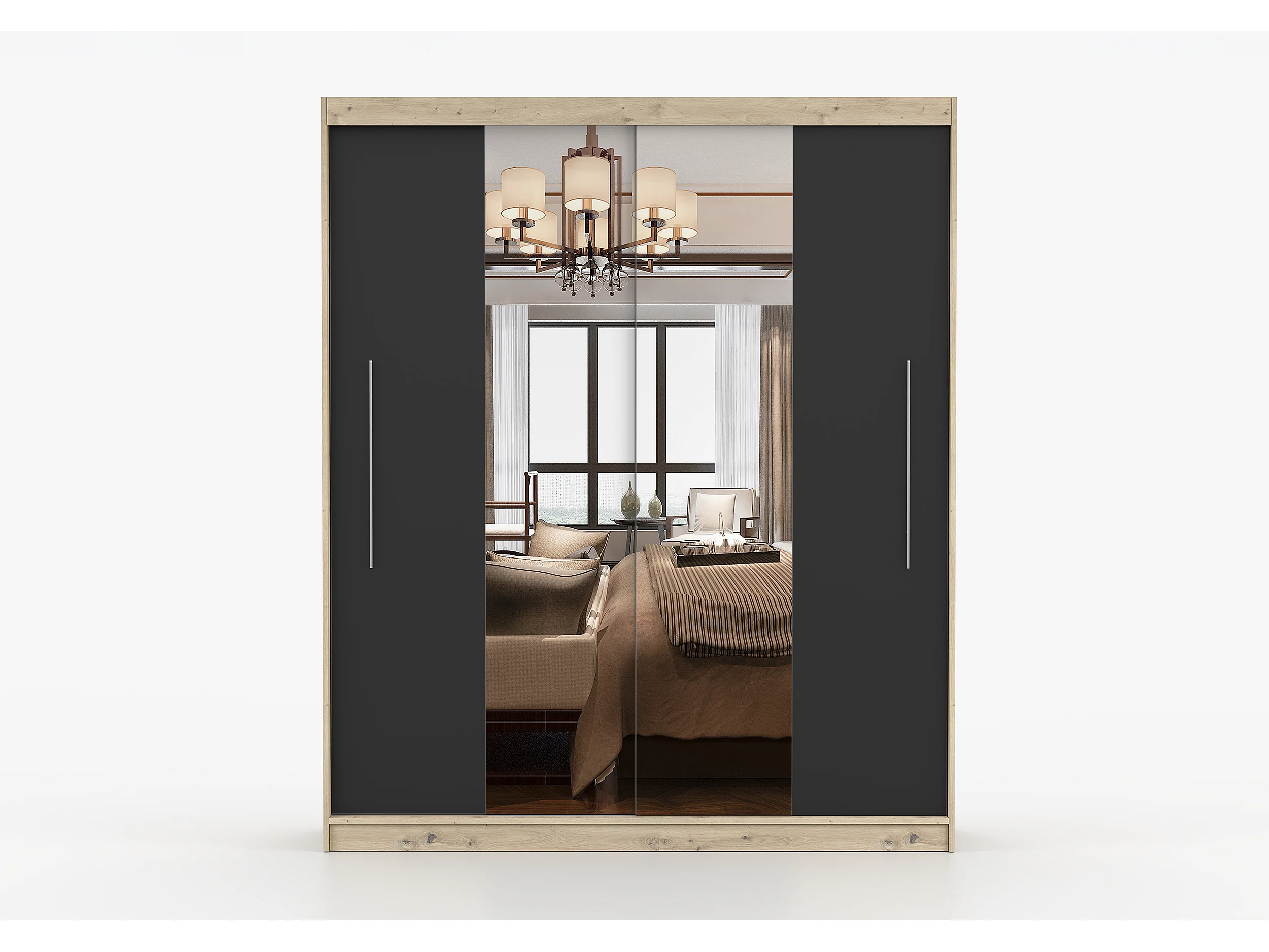 Armoire Althéa 203 cm avec miroir - Effet bois - Noir