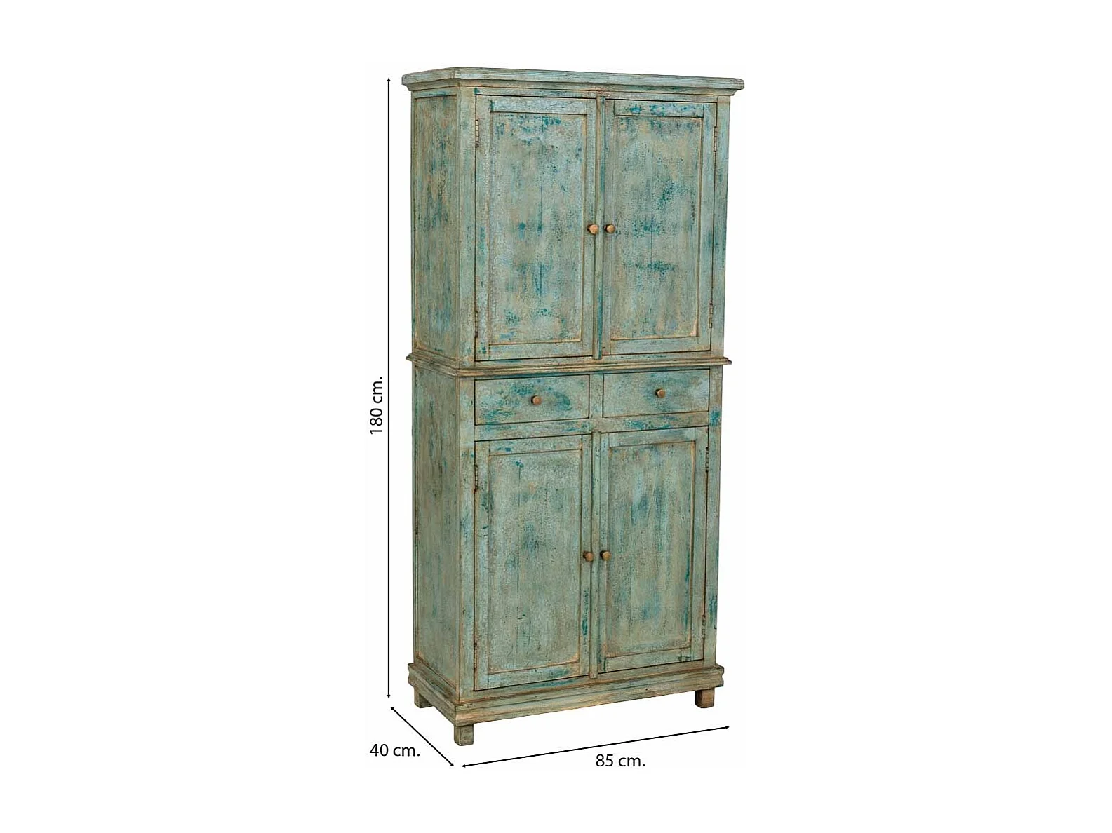 Armoire artisanale en bois turquoise 85 x 40 x 180 cm (hauteur)