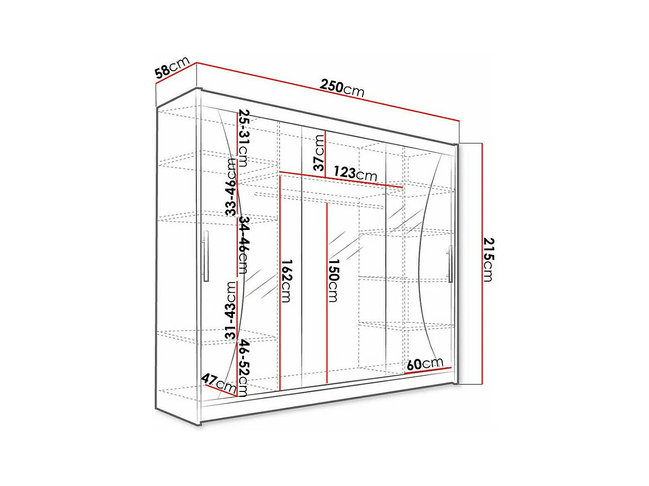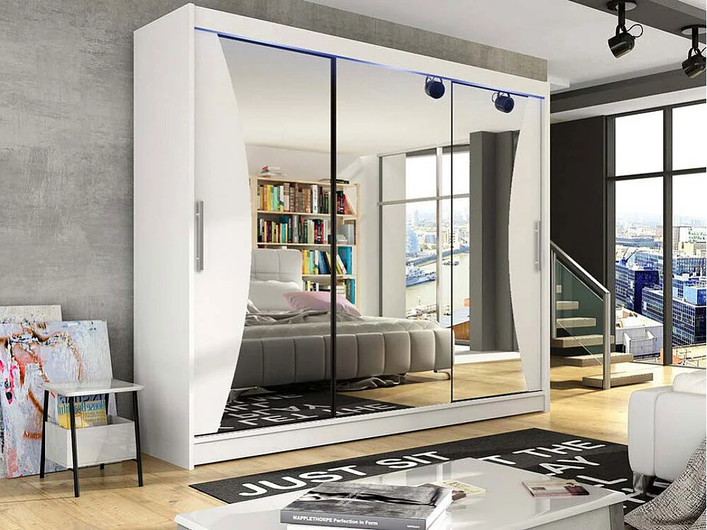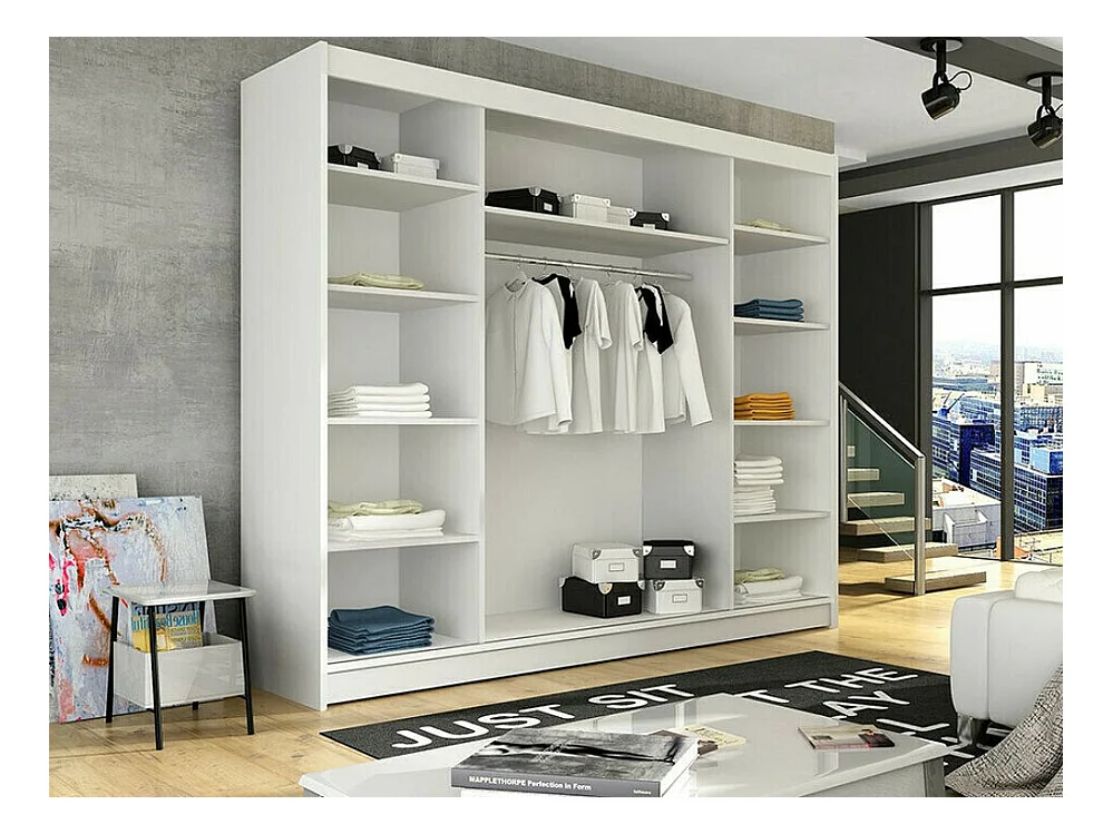Armoire Closico 120, Blanc, 215x250x58cm, Portes d'armoire: Coulissantes