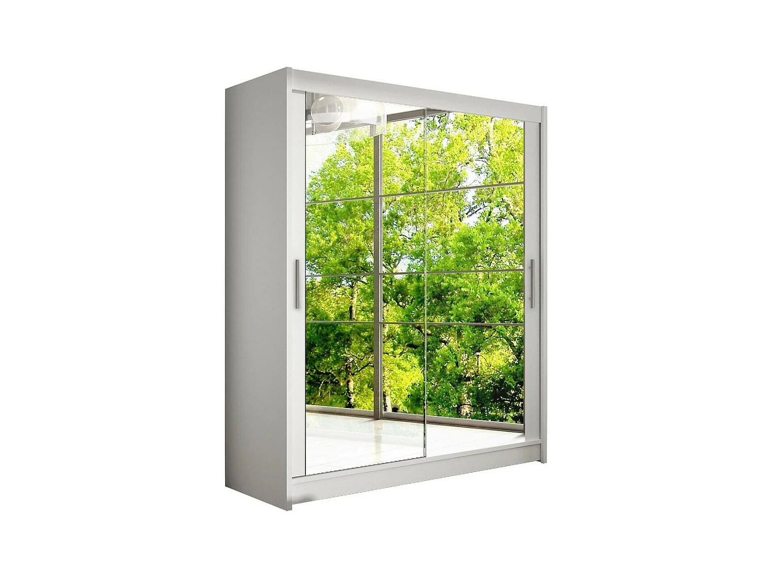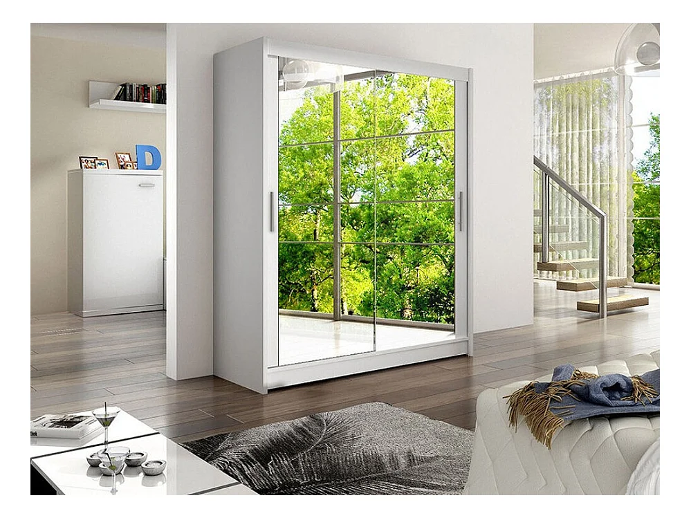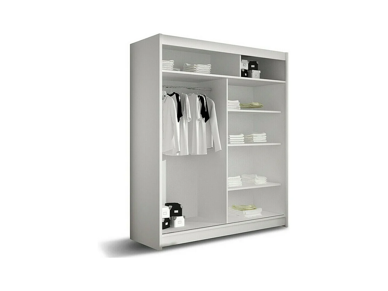 Armoire Closico 127, Blanc, 200x150x58cm, Portes d'armoire: Coulissantes
