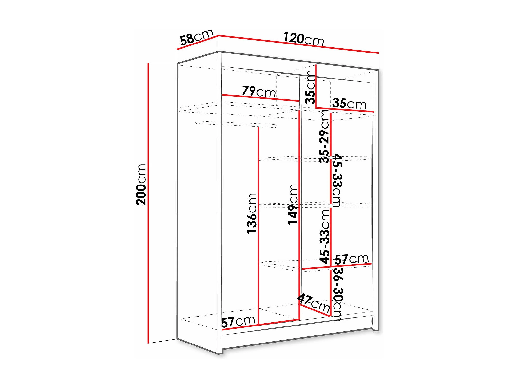 Armoire Closico 133, Sonoma chêne, 200x120x58cm, Portes d'armoire: Coulissantes