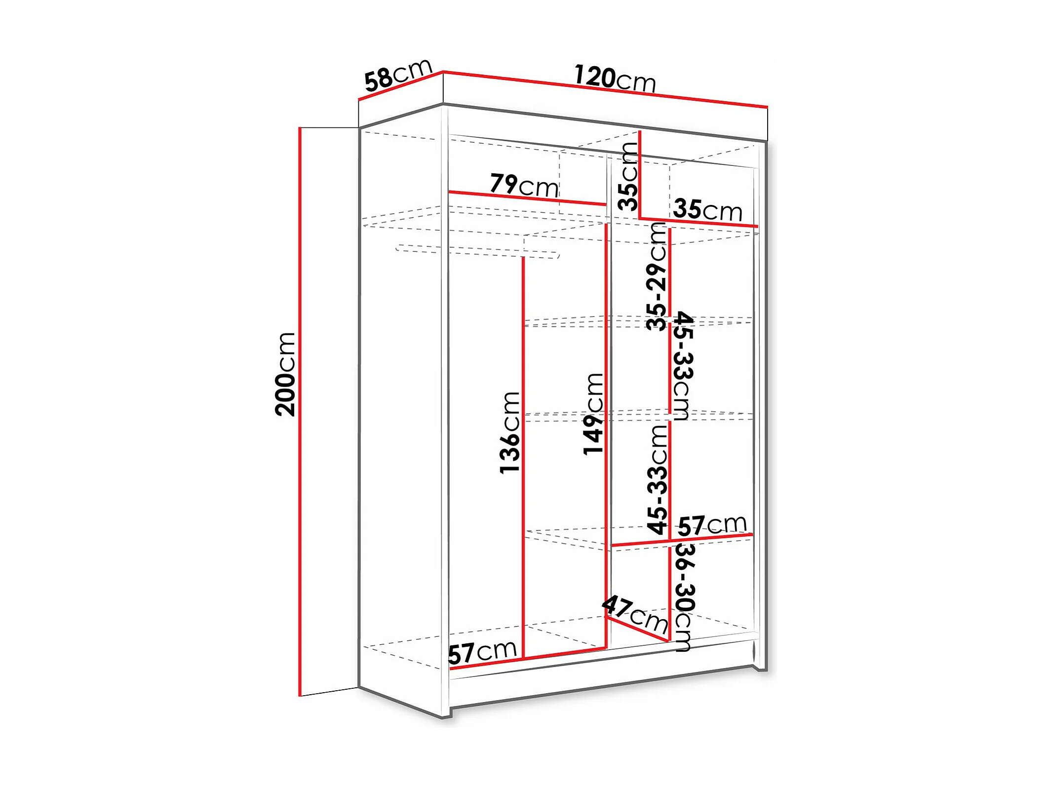 Armoire Closico 133, Sonoma chêne, 200x120x58cm, Portes d'armoire: Coulissantes