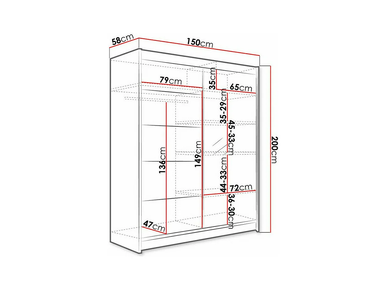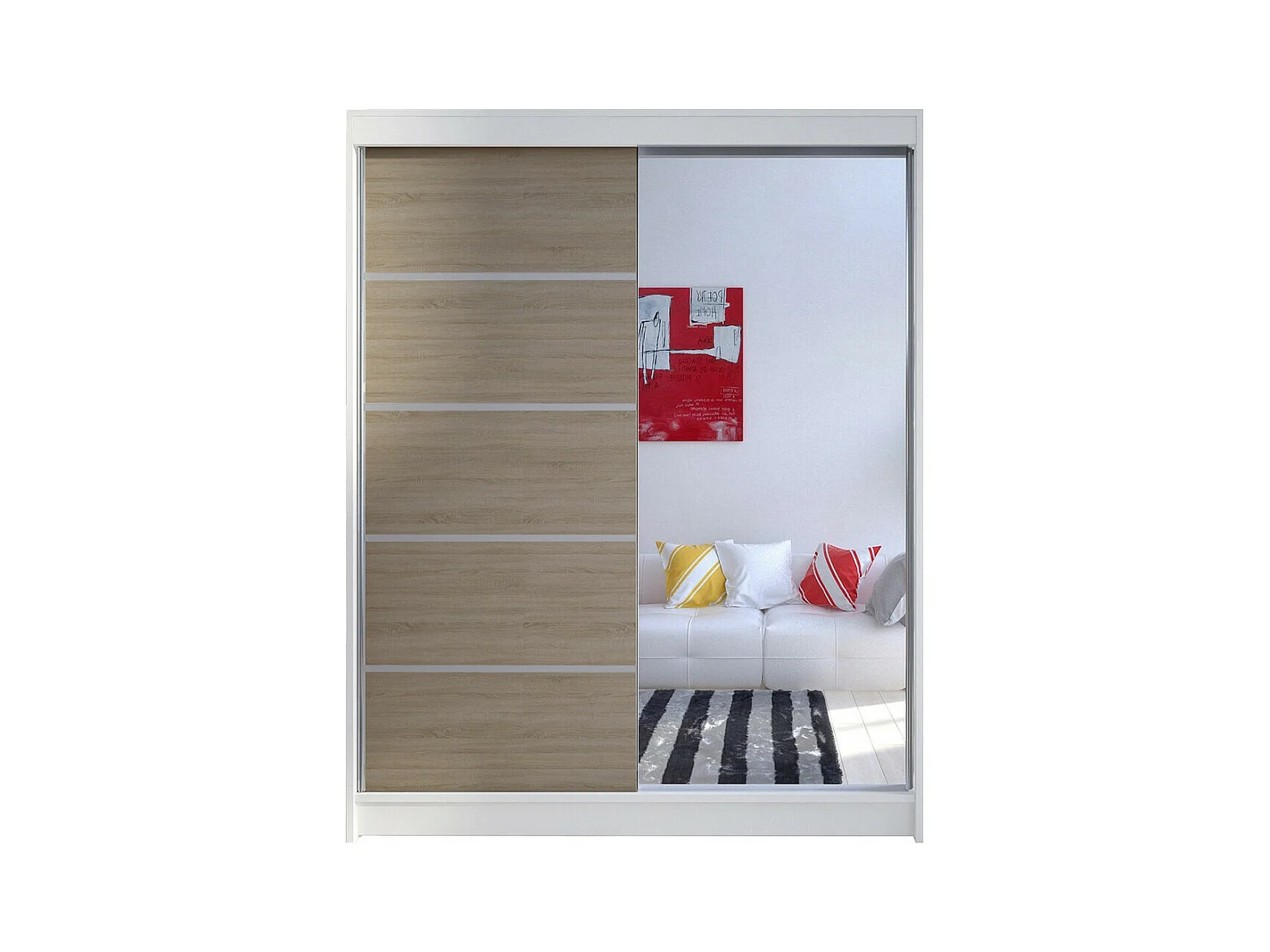 Armoire Closico 143, Blanc|Sonoma chêne, 200x150x58cm, Portes d'armoire: Coulissantes