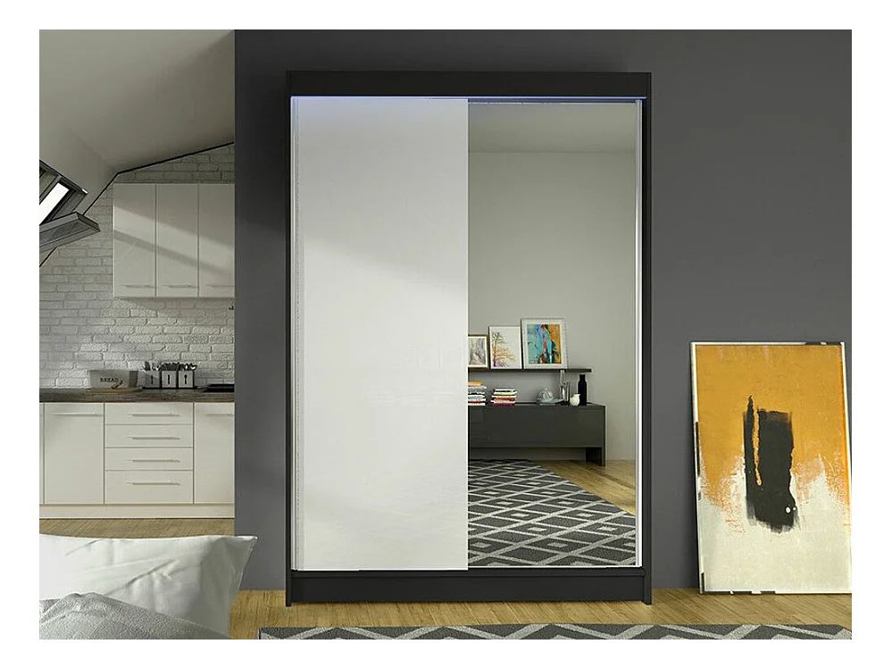Armoire Closico 147, Noir|Blanc, 200x120x58cm, Portes d'armoire: Coulissantes