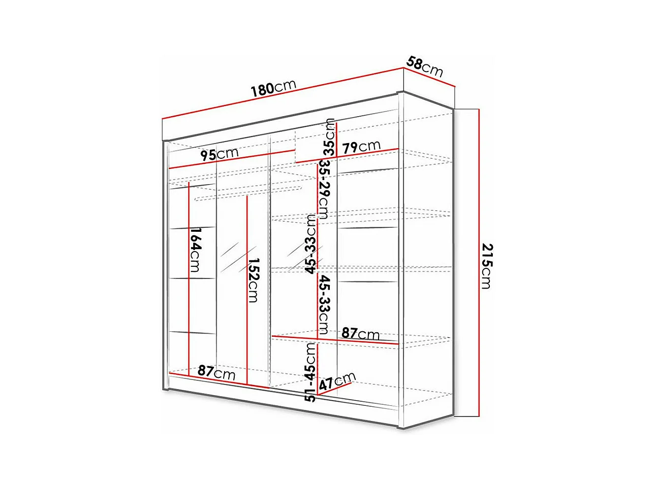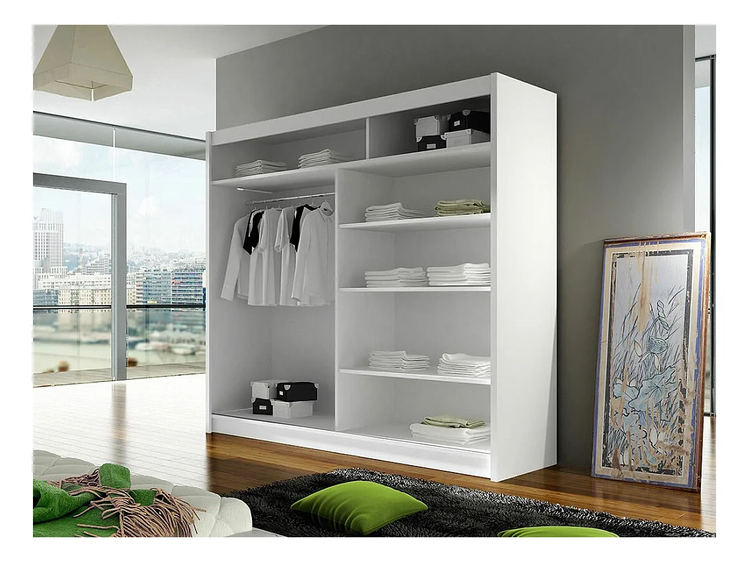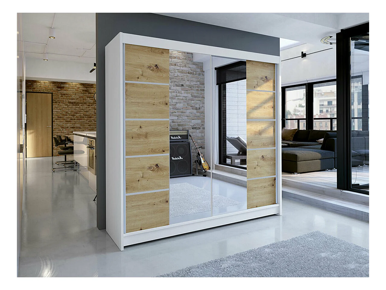 Armoire Closico 154, Blanc|Chêne Artisan, 215x180x58cm, Portes d'armoire: Coulissantes