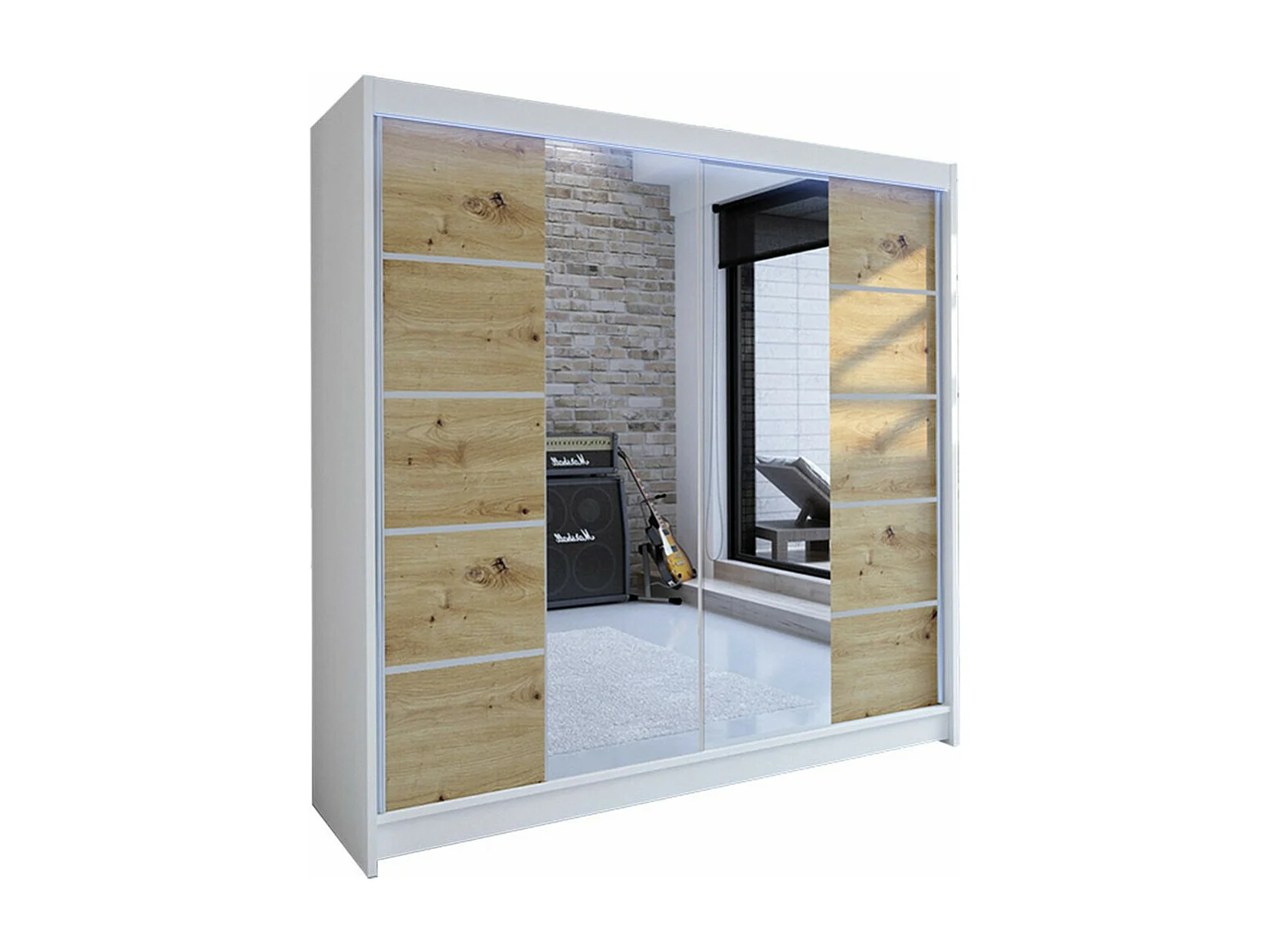 Armoire Closico 154, Chêne Artisan|Blanc, 215x180x58cm, Portes d'armoire: Coulissantes