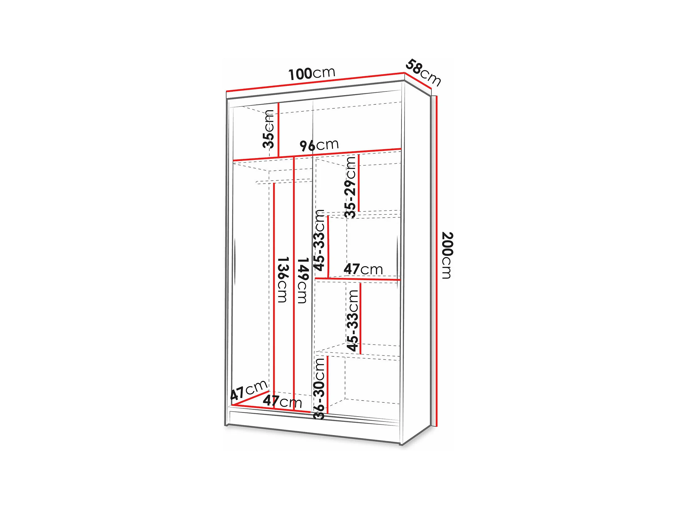 Armoire Closico 164, Blanc, 200x100x58cm, Portes d'armoire: Coulissantes