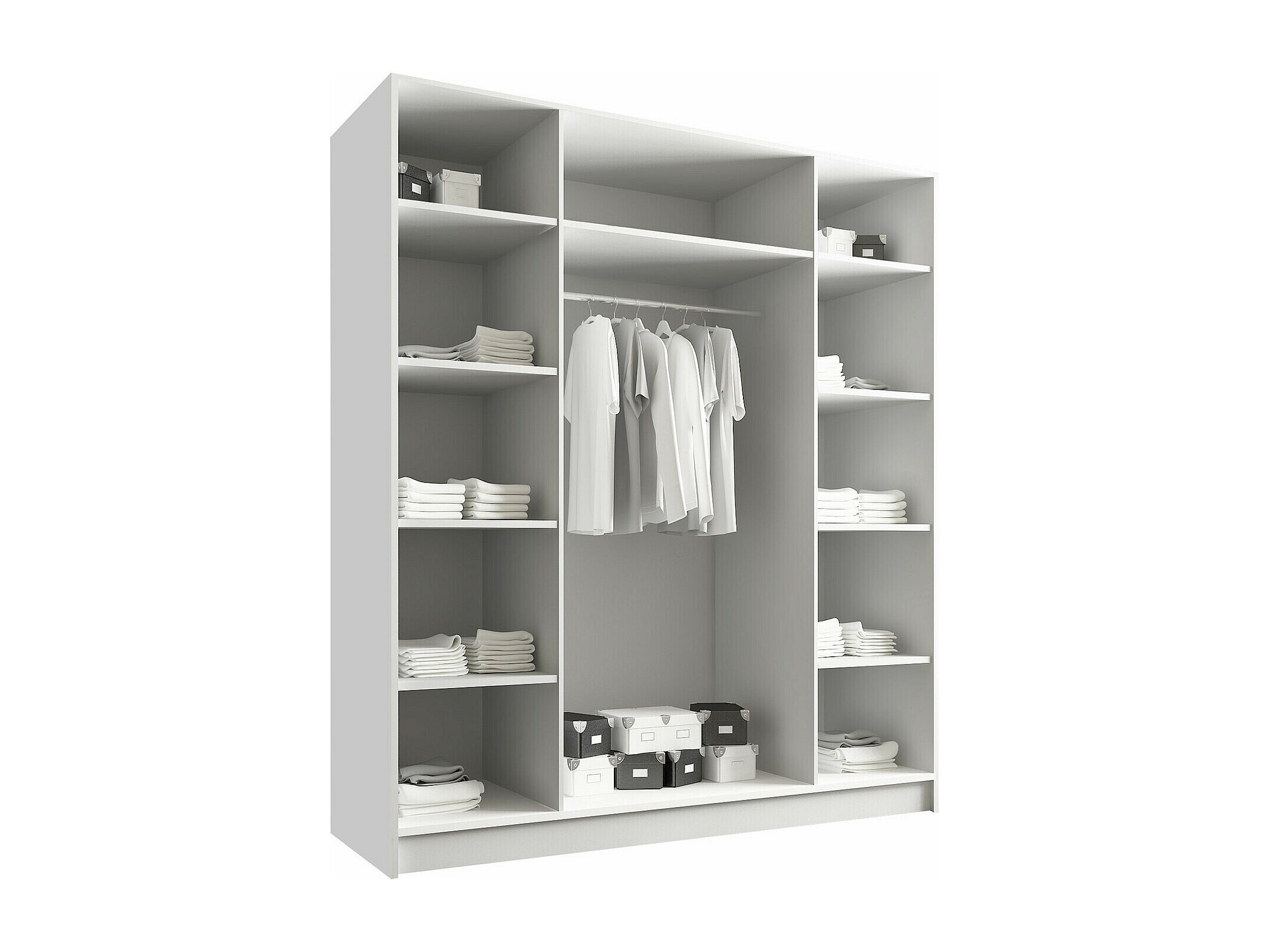 Armoire Closico 190, Doré|Blanc, 215x200x58cm, Portes d'armoire: Avec des charnières