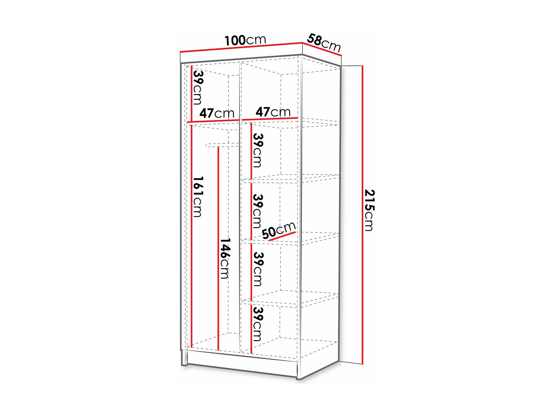 Armoire Closico 194, Doré|Noir, 215x100x58cm, Portes d'armoire: Avec des charnières
