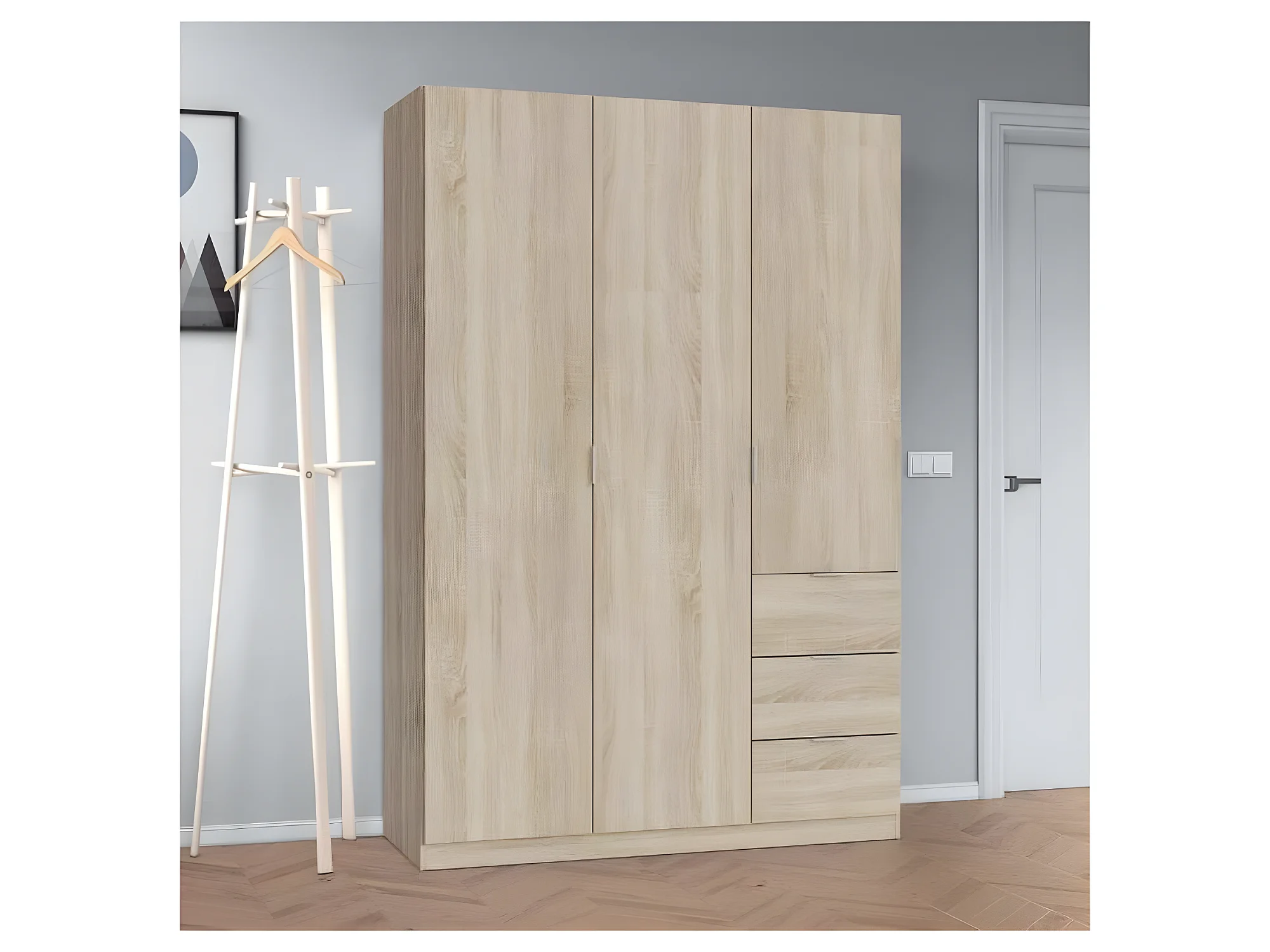 Armoire avec 3 portes coloris chêne canadien - 200 x 135 x 52 cm