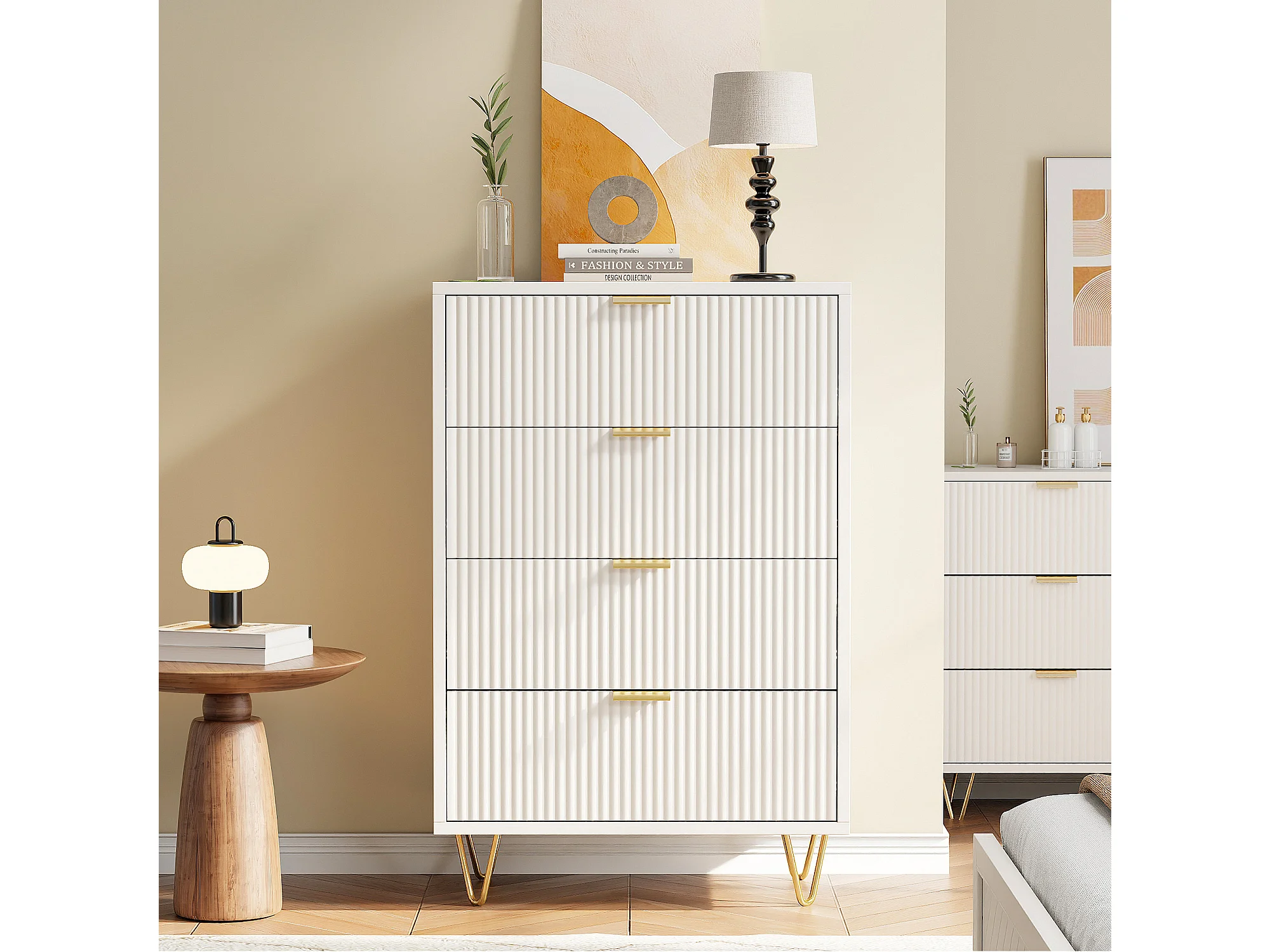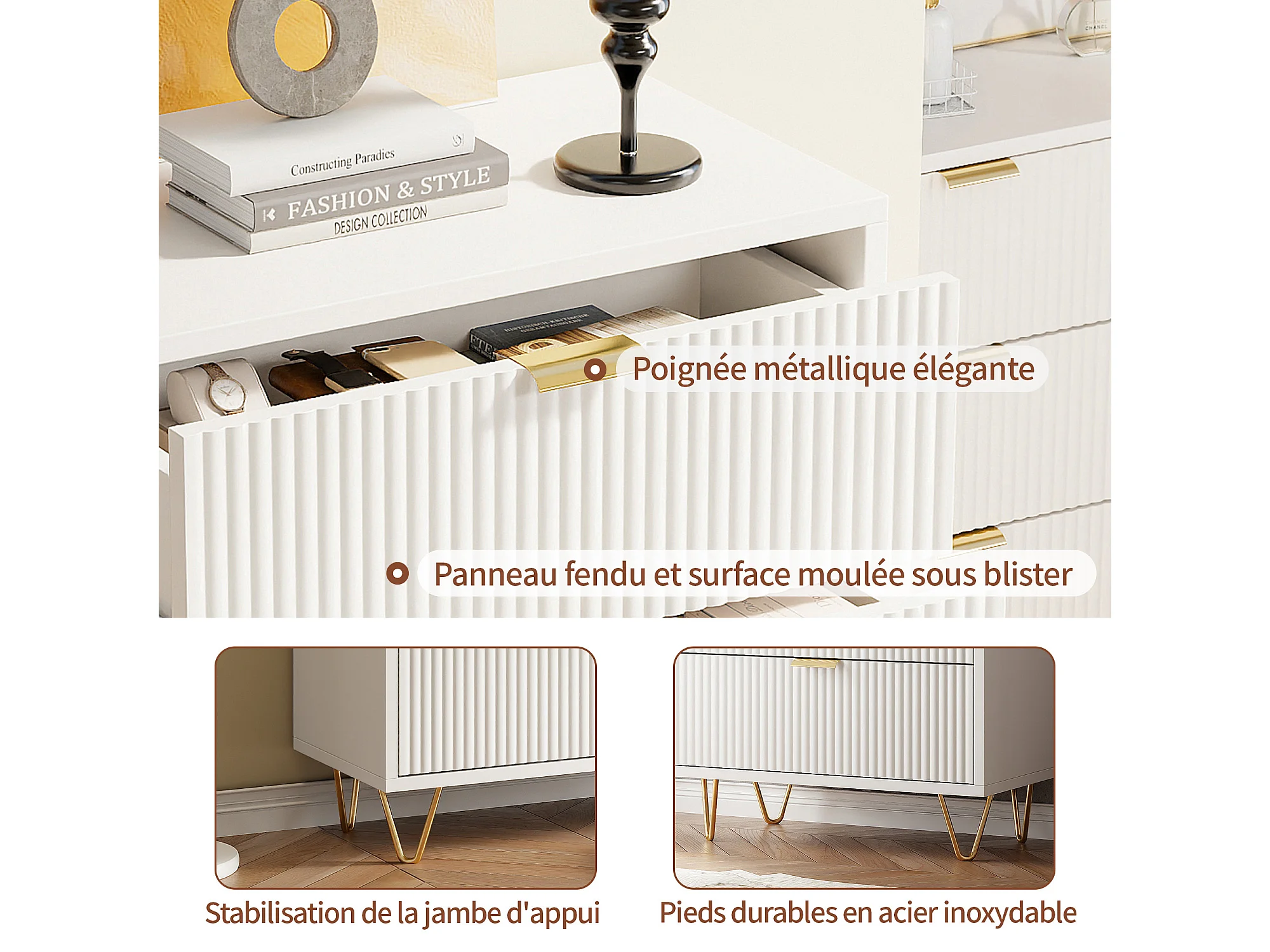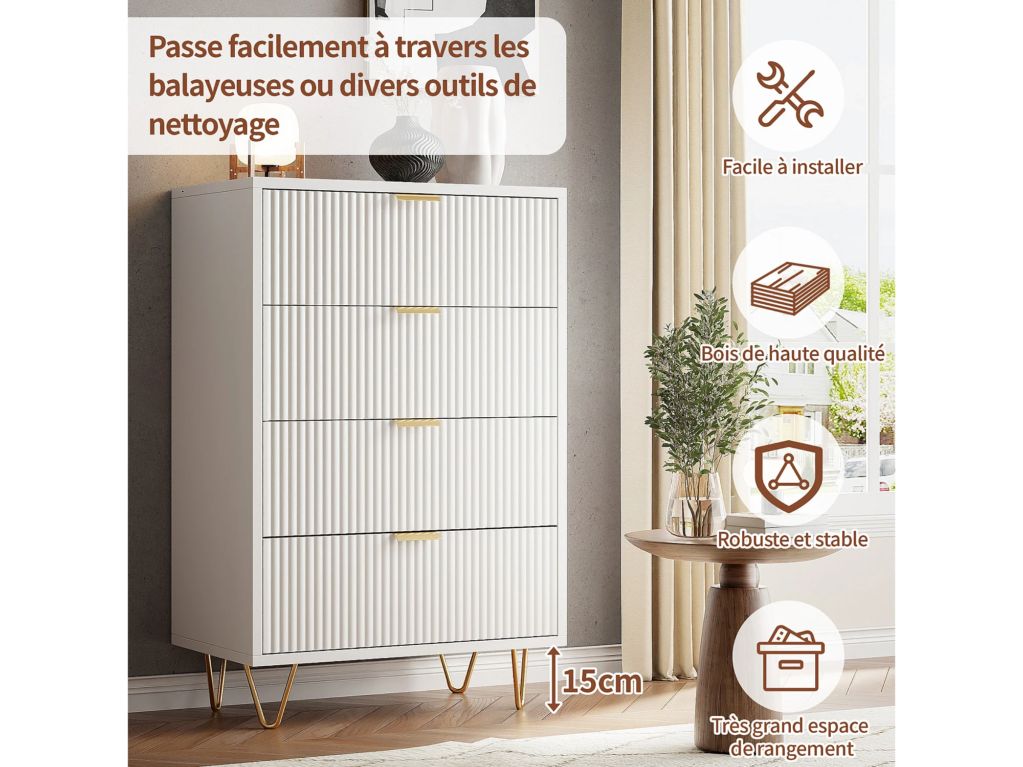Armoire avec 4 tiroirs, commode de stockage avec pieds en métal, placard étroit pour salon chambre couloir-blanc