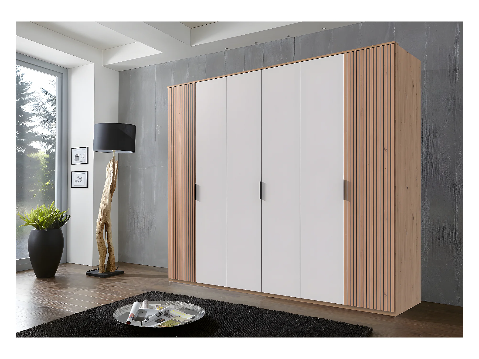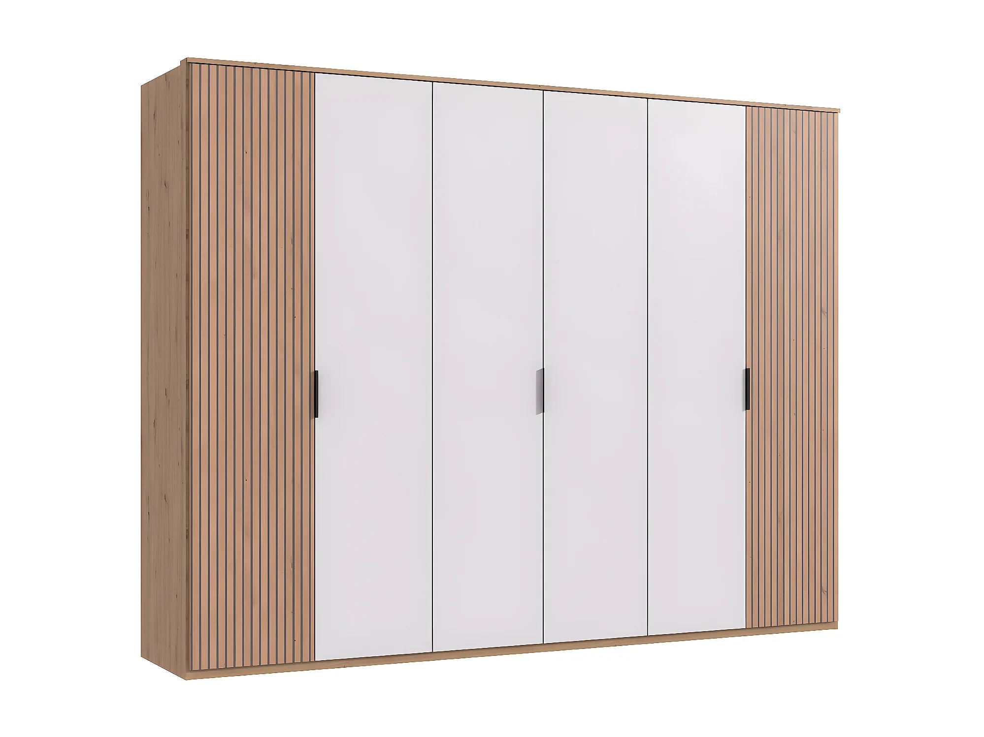 Armoire avec corniche, placard coloris blanc, imitation chêne Artisan - L. 270 x H. 210 x P. 58 cm
