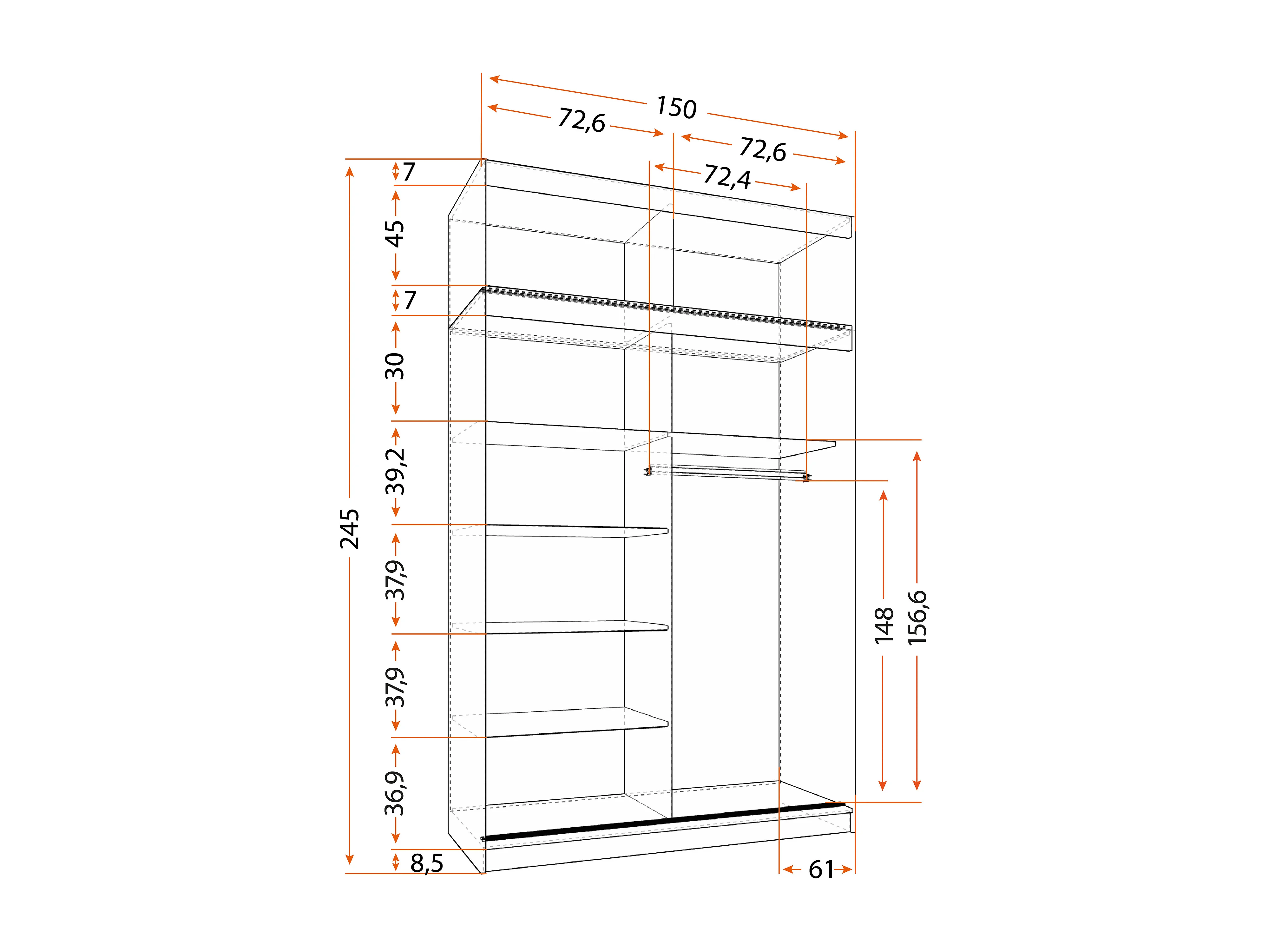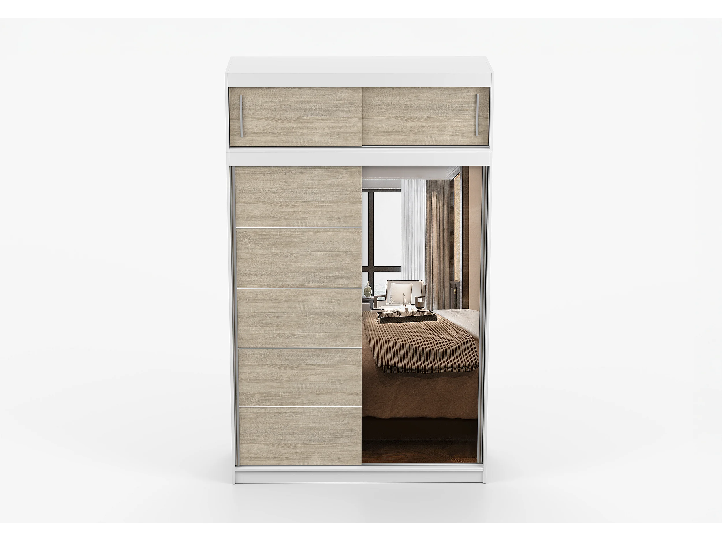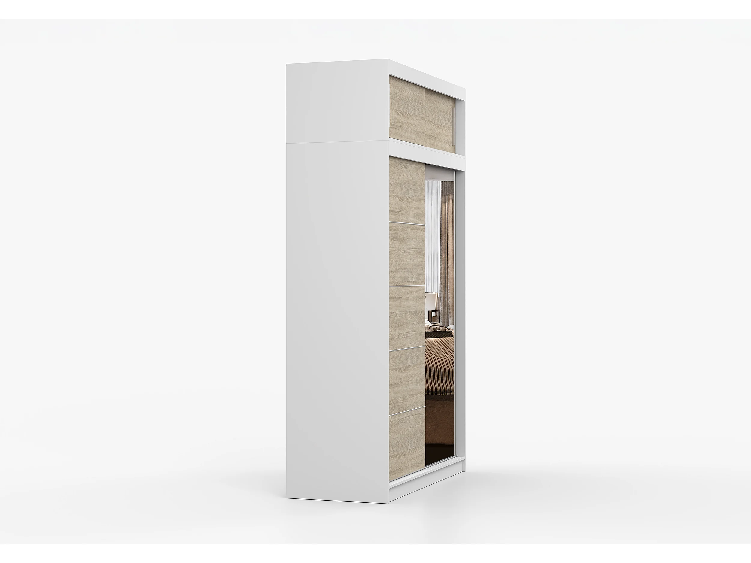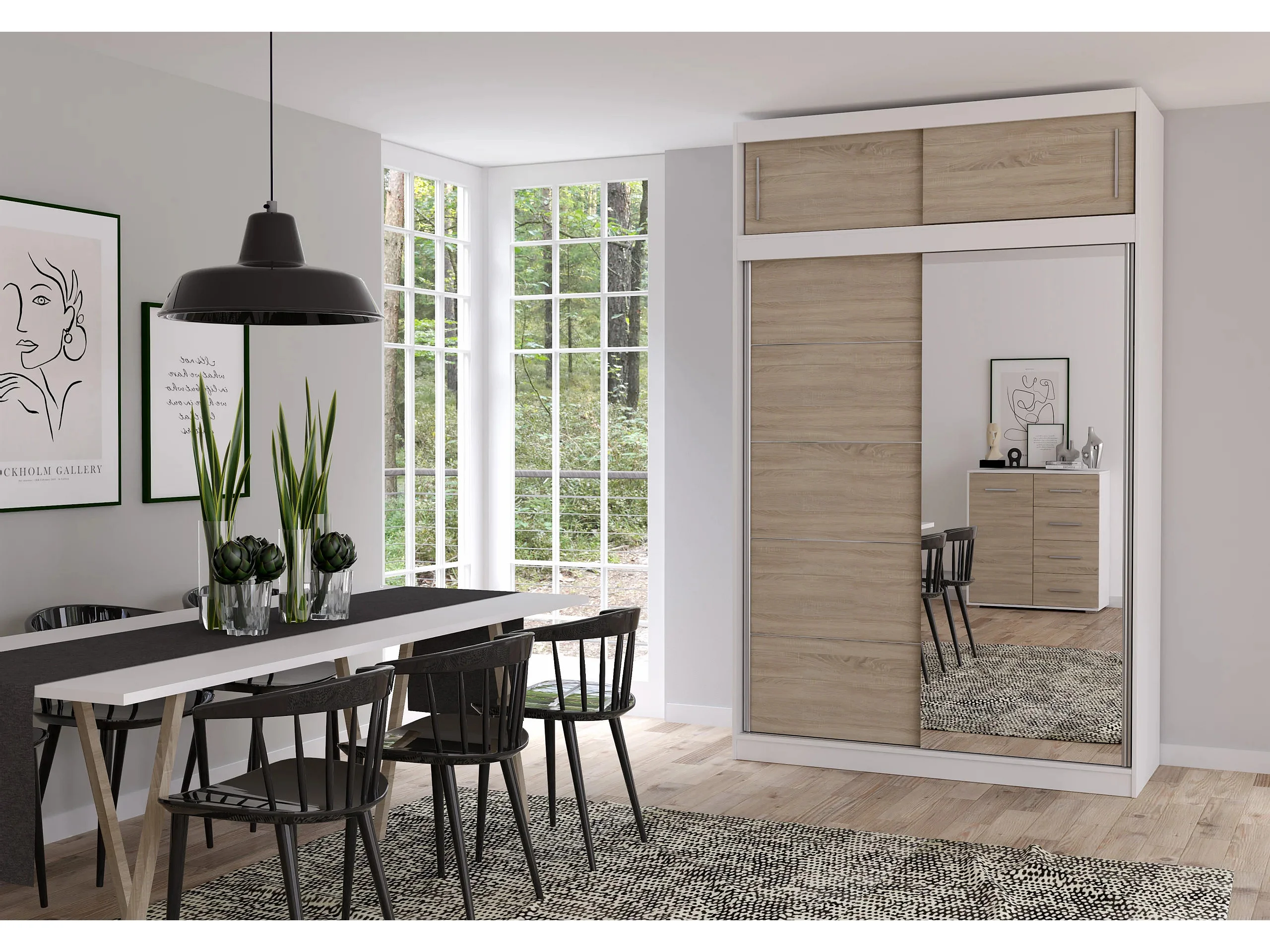 Armoire avec extension Faella 150 cm avec miroir - Blanc - Chêne