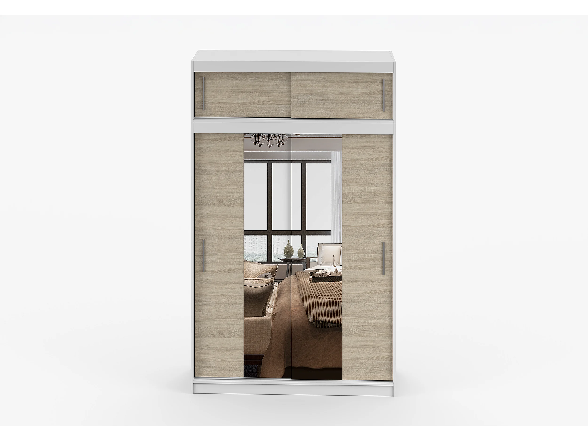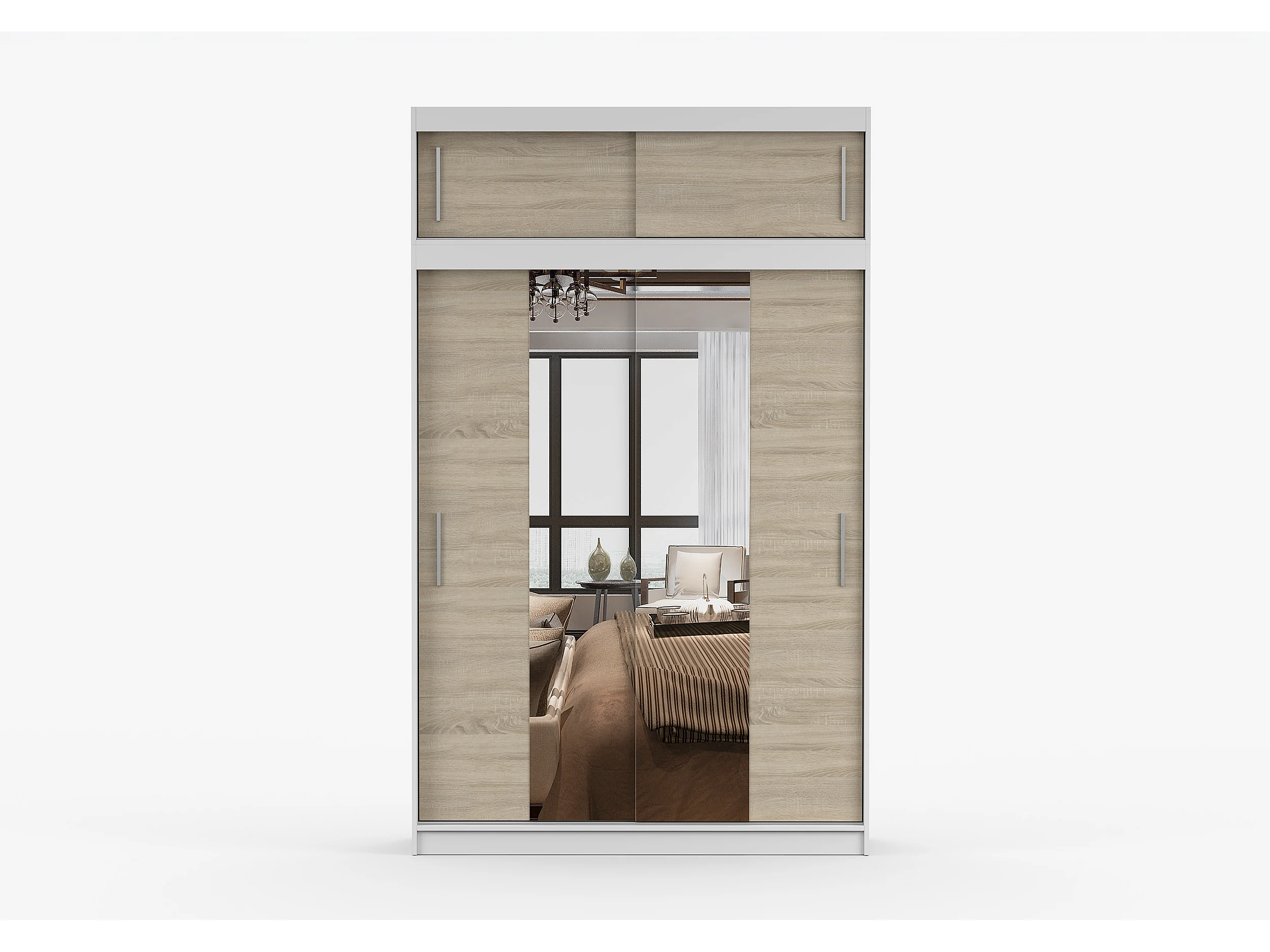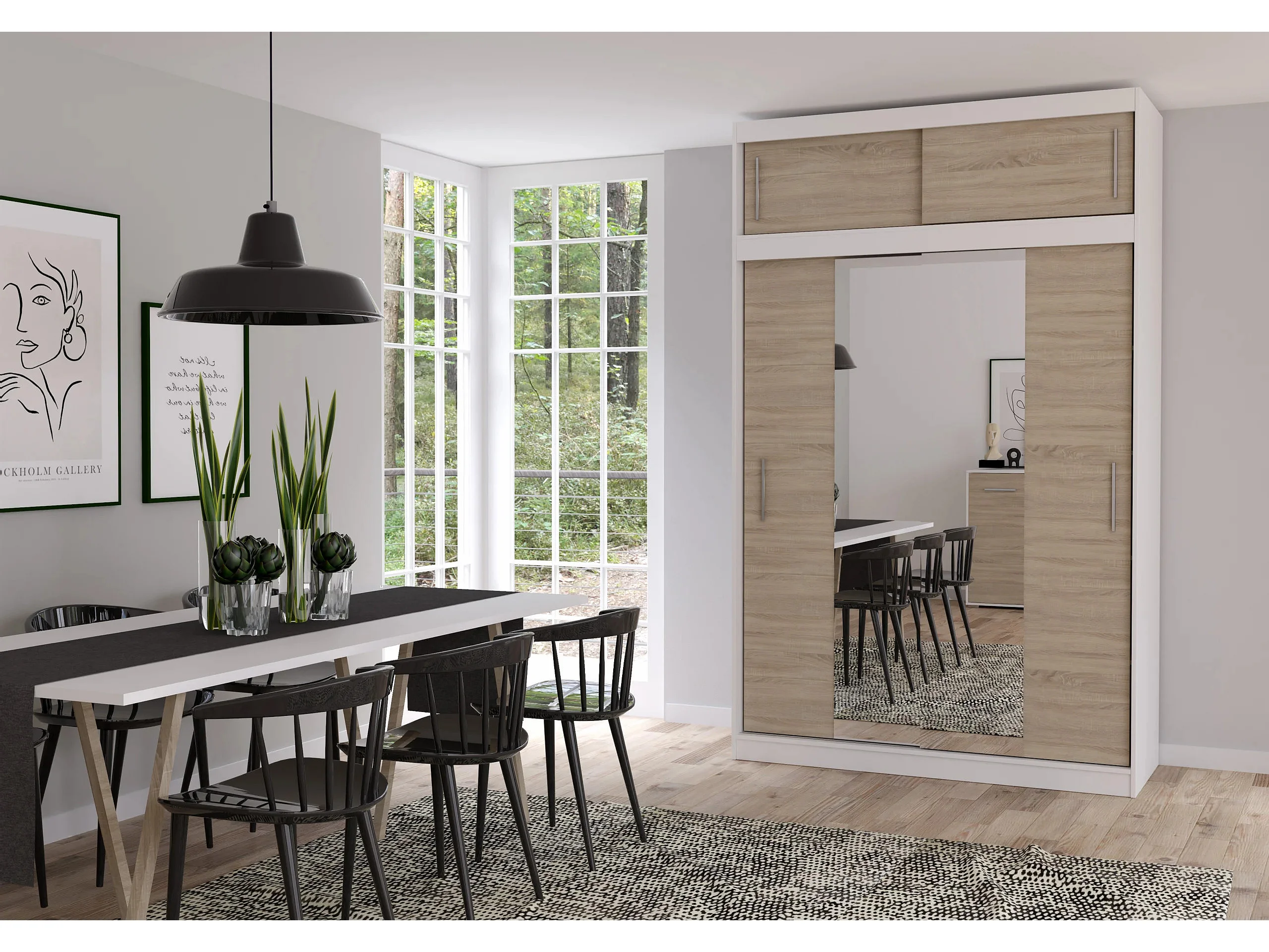 Armoire avec extension Nahelys 150 cm avec miroir - Blanc - Chêne