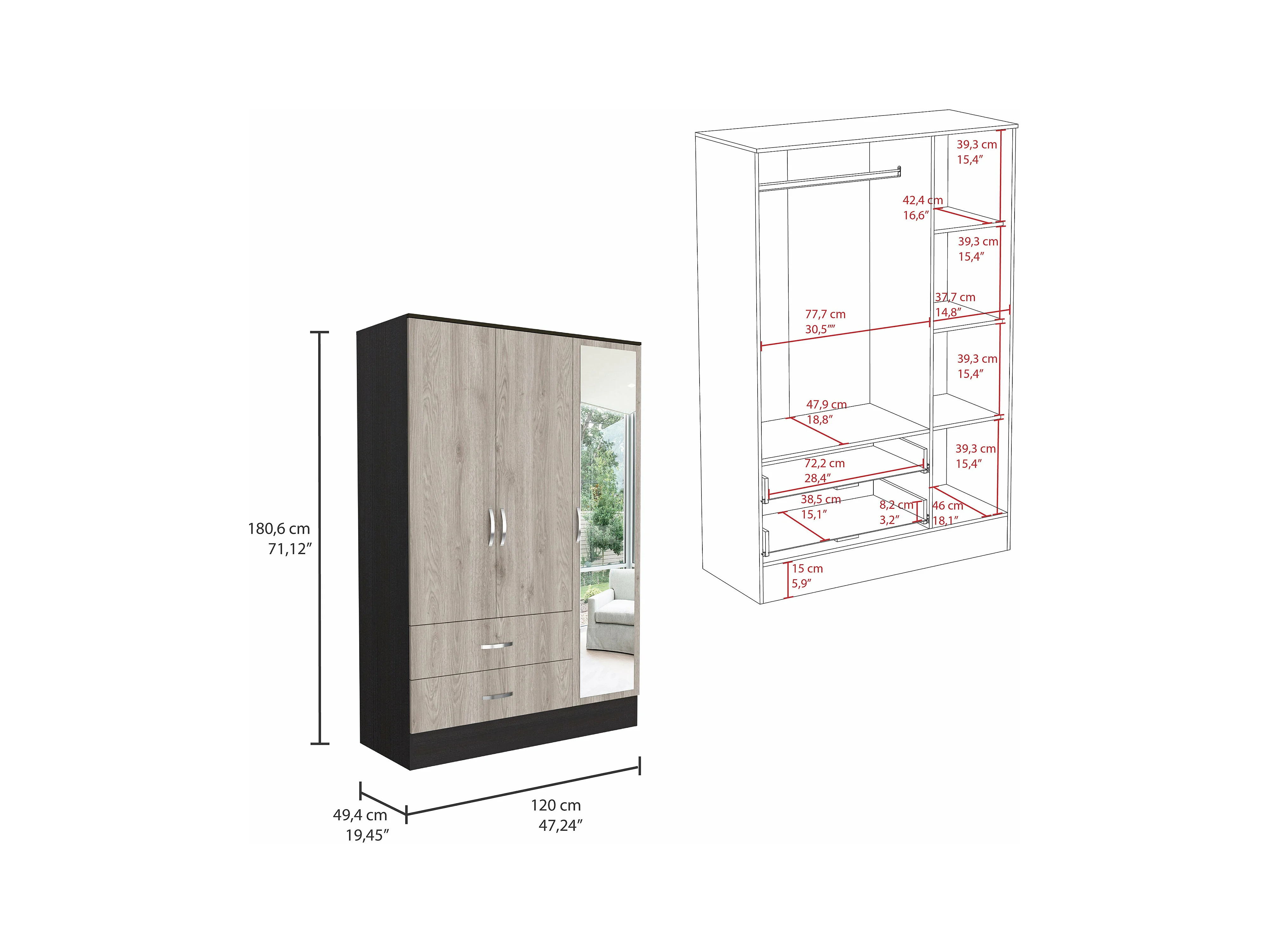 Armoire avec miroir Bolton, 3 portes et 2 tiroirs