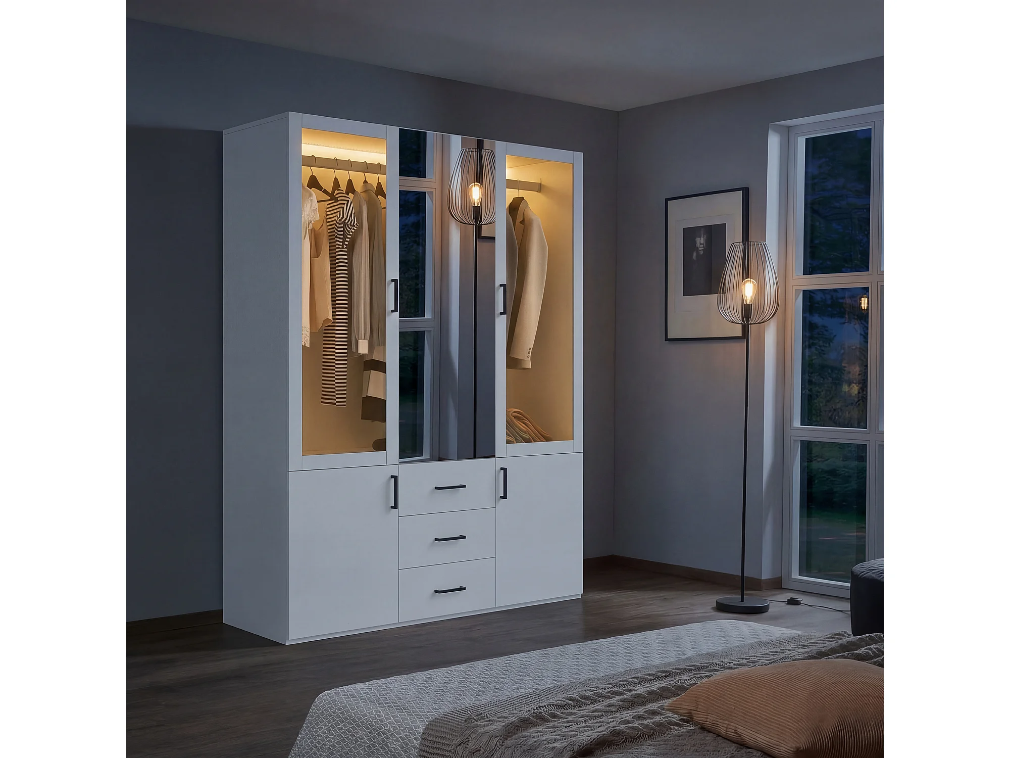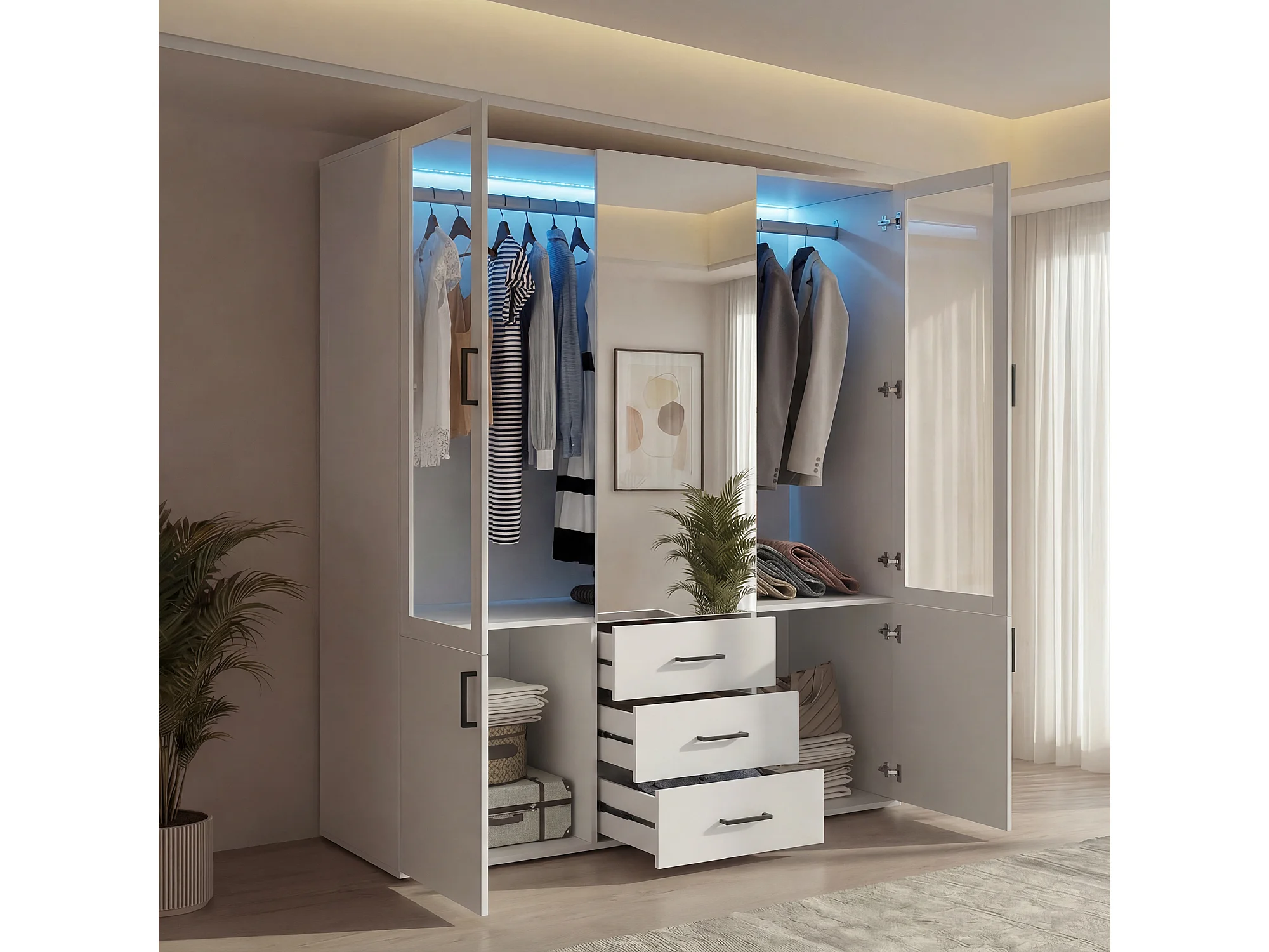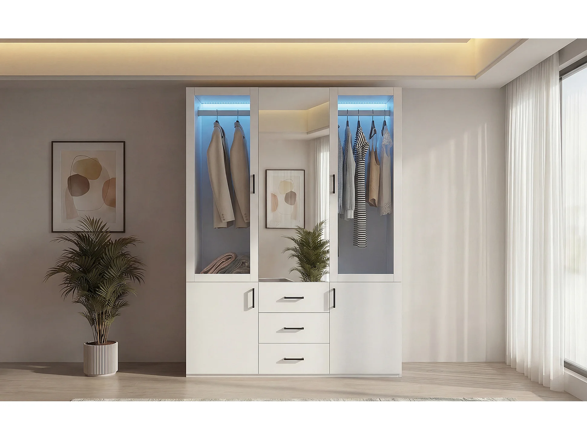 Armoire avec portes et tiroirs transparents, armoire d'entrée de style moderne avec miroir ,130 x 51,8 x 181,5 cm