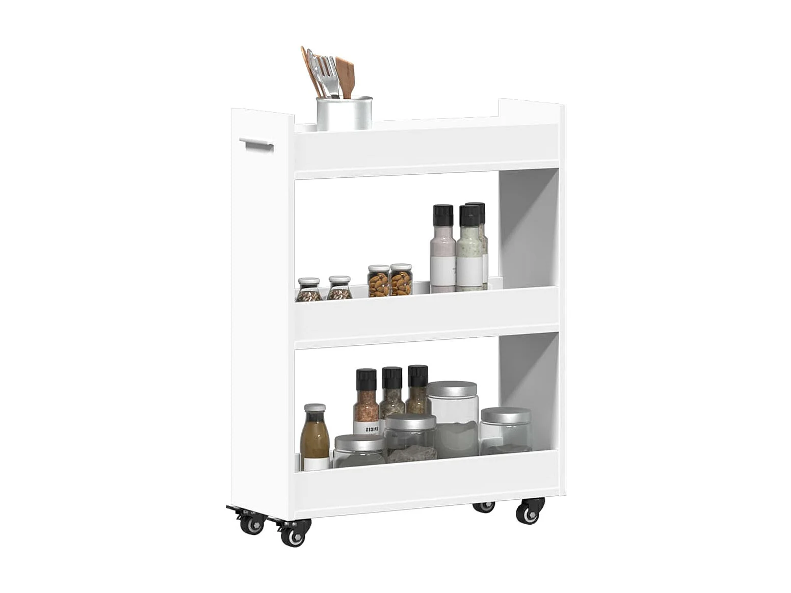 Armoire de salle de bain étroite avec roulettes blanc