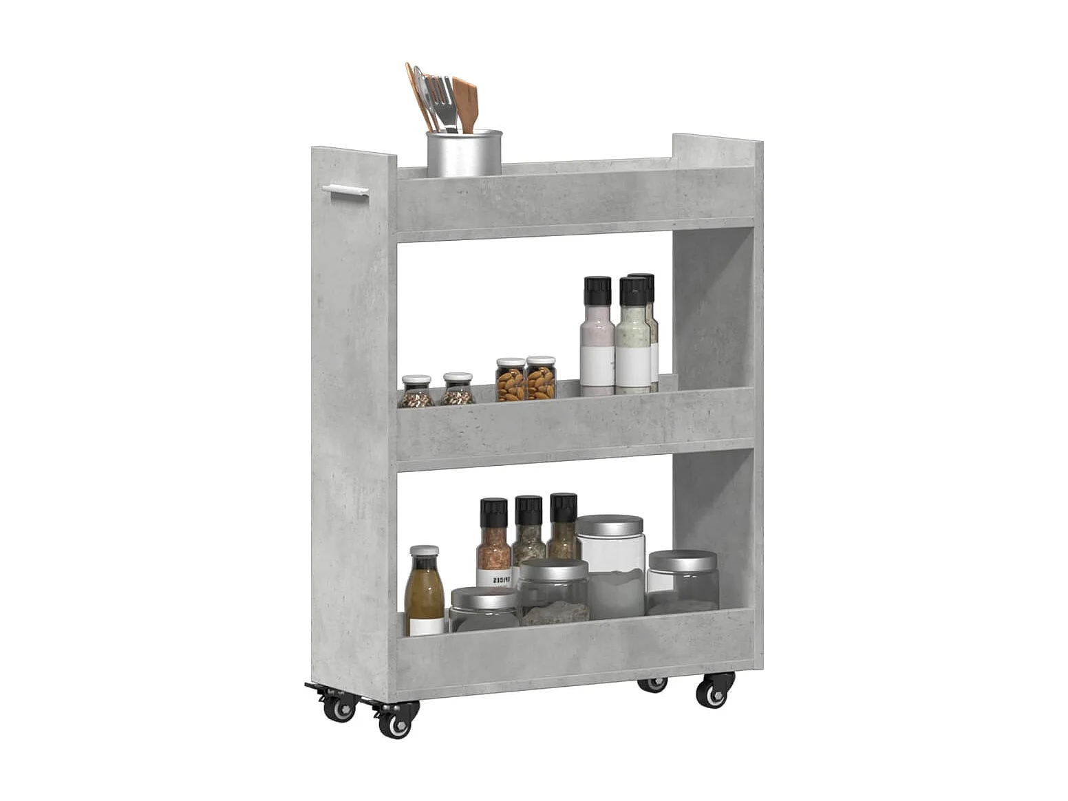 Armoire avec roues gris béton 60x22x79 bois d'ingénierie