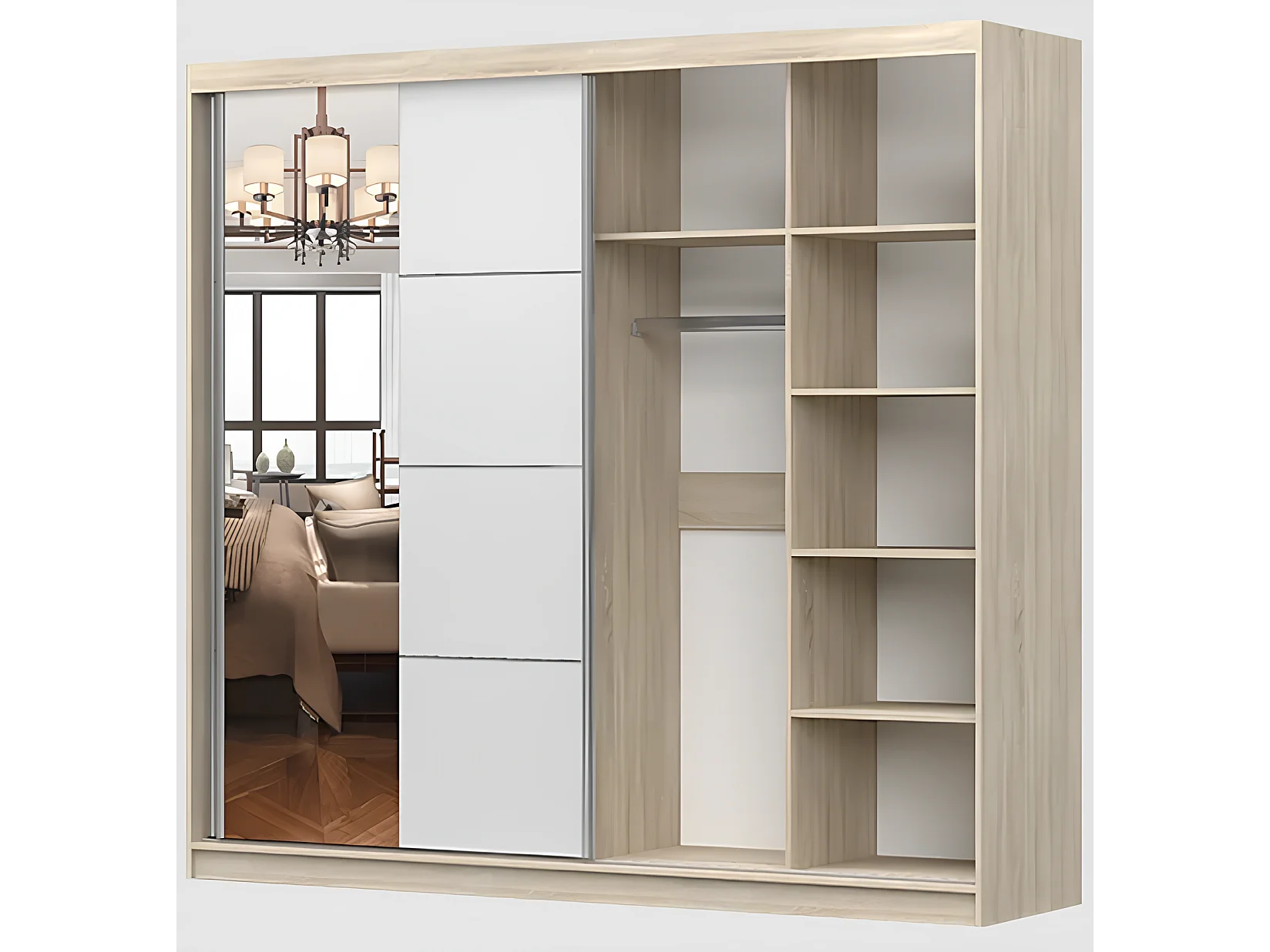 Armoire Azénor 233 cm avec miroir - Blanc
