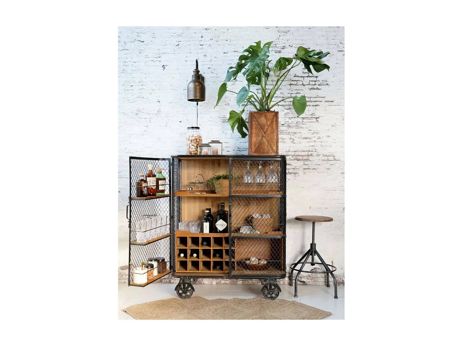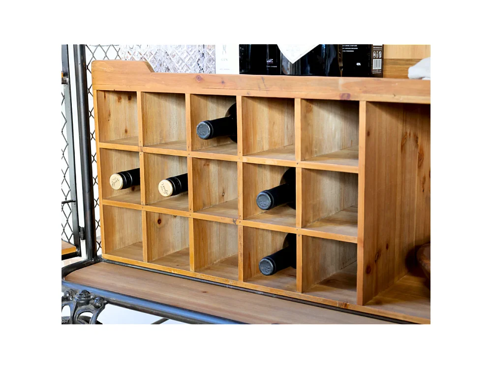 Meuble desserte roulettes chariot cuisine bois marron fer noir 116.5cm