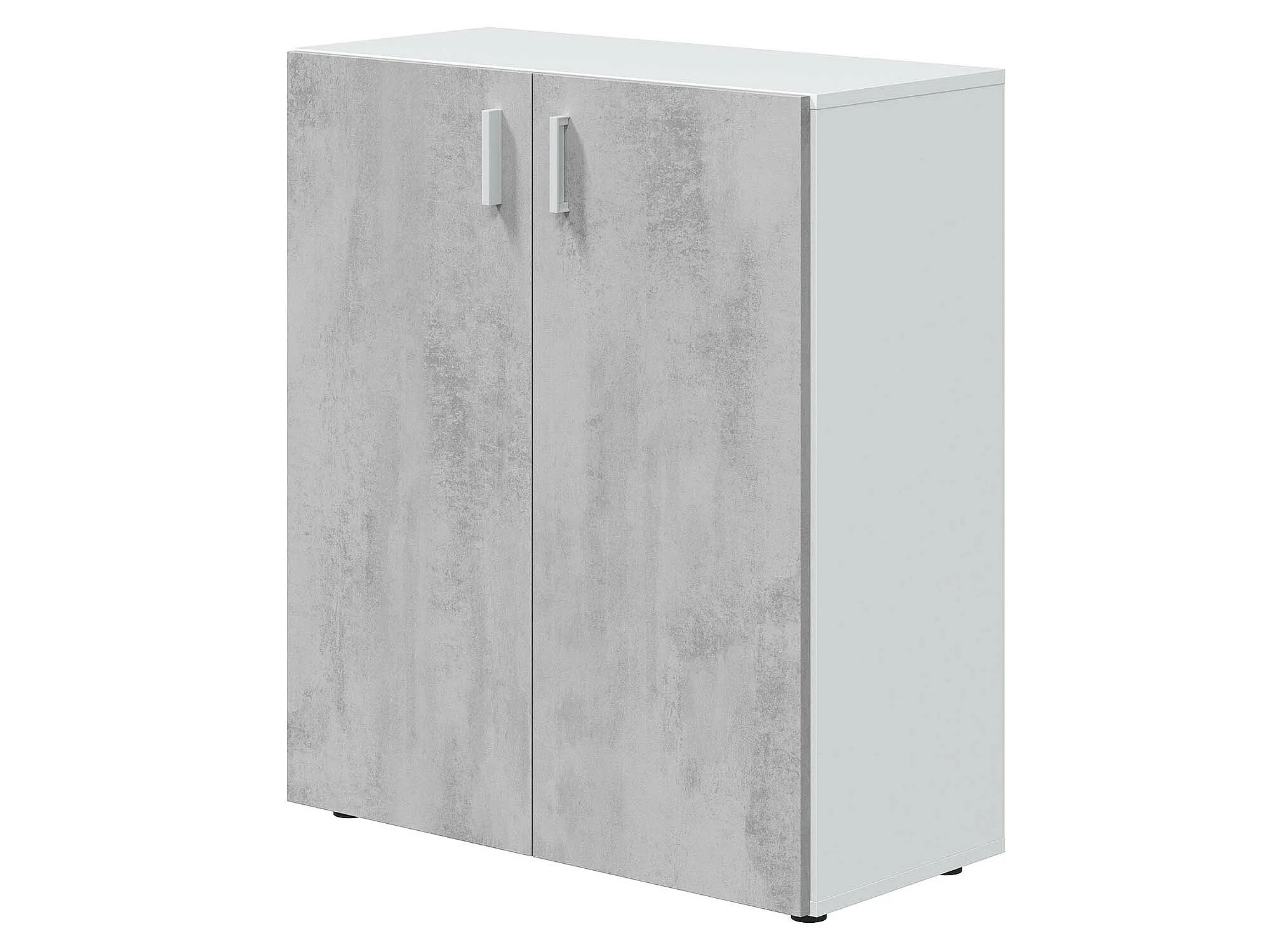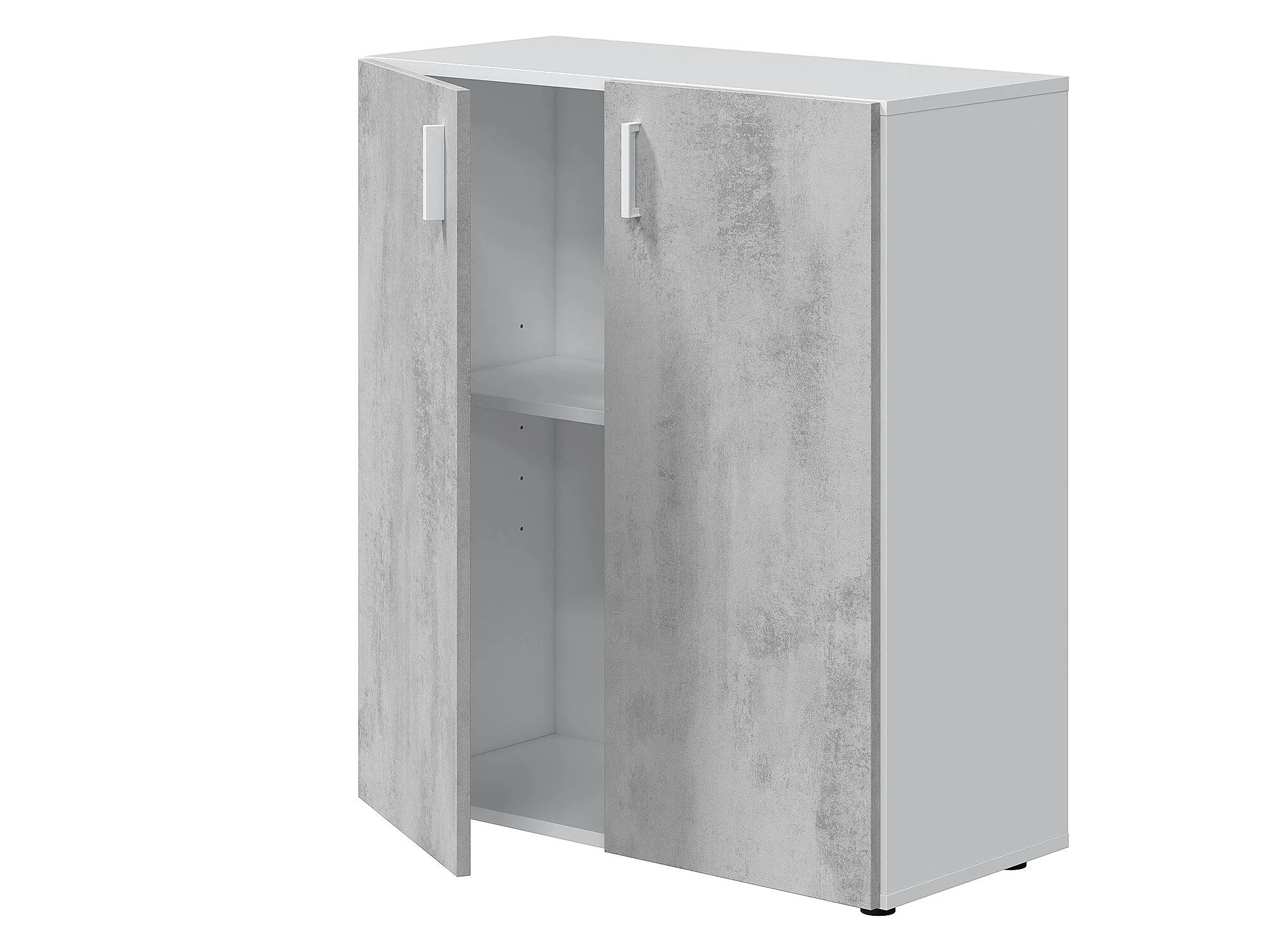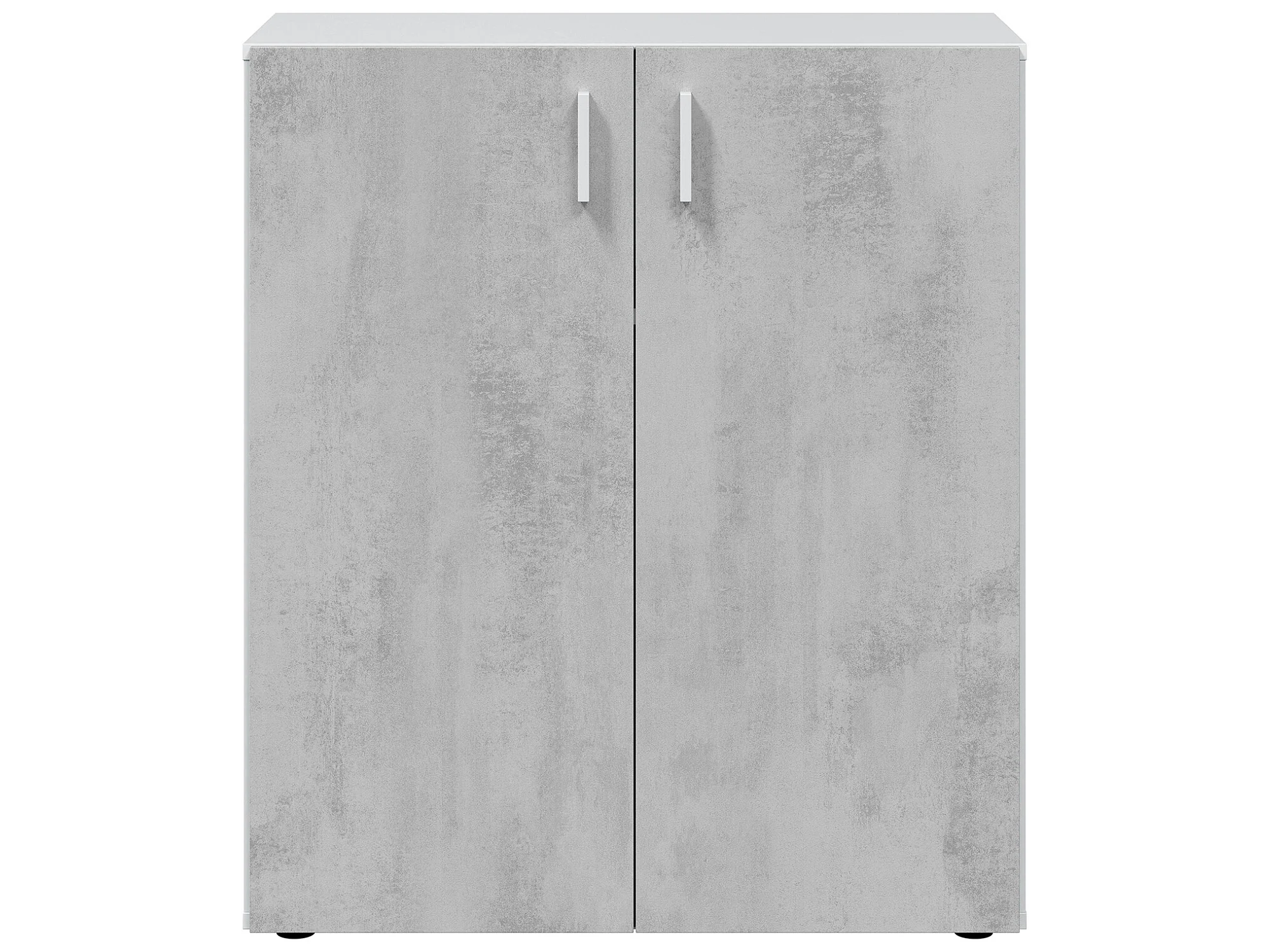 Armoire basse à 2 portes meuble de rangement blanc mat et gris ciment - Hauteur 92 x Longueur 80 cm x Profondeur 37 cm