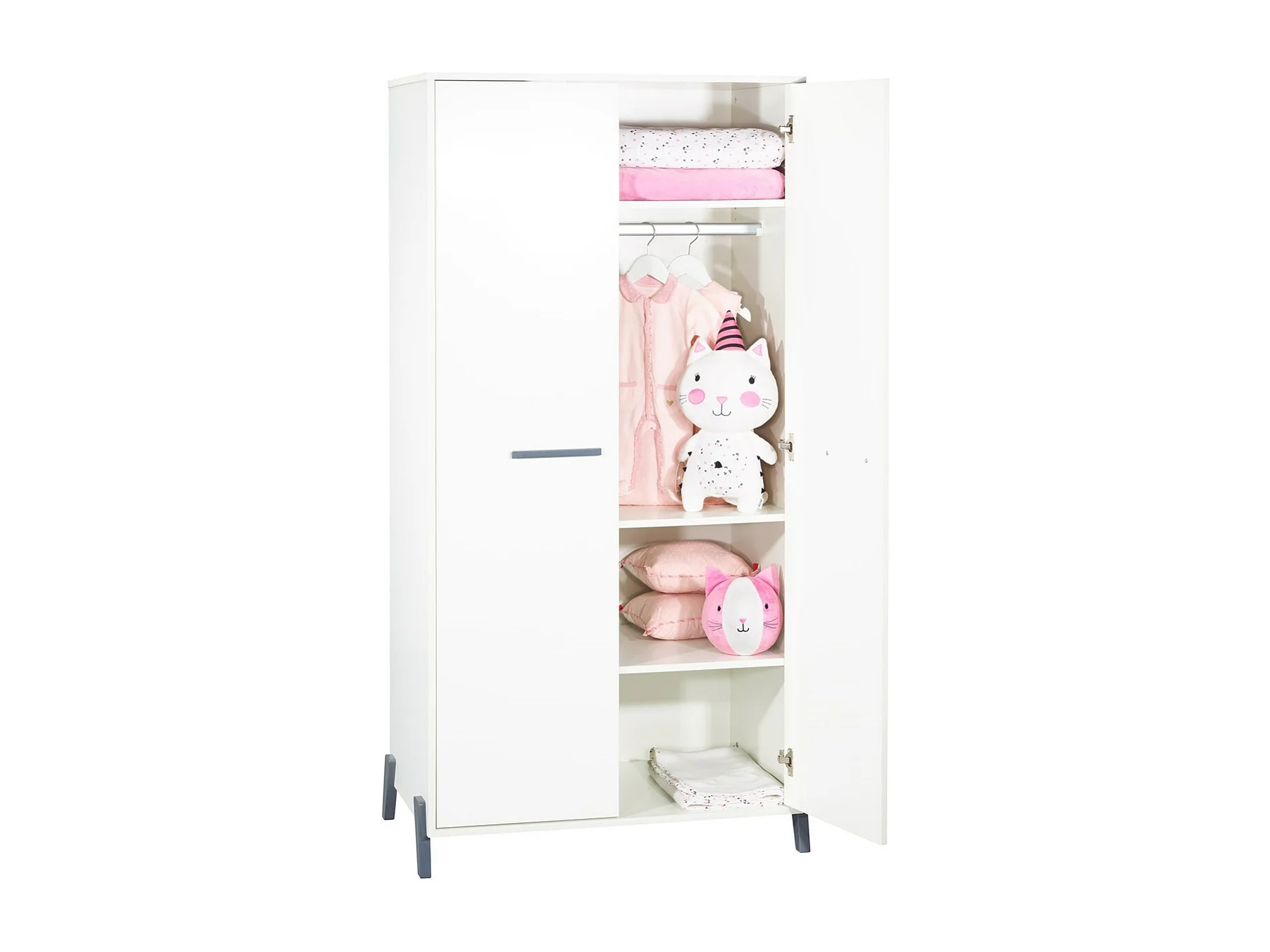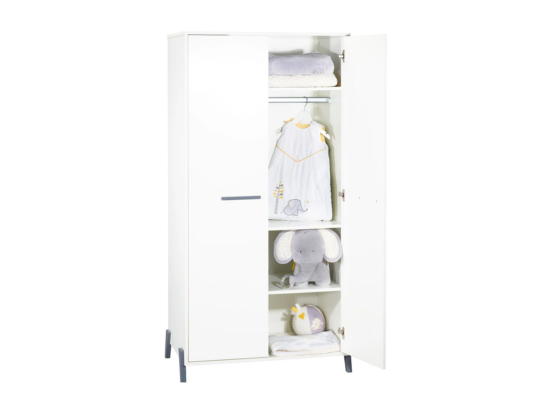 Armoire bébé 2 portes sur pieds en bois blanc JOY - BabyPrice