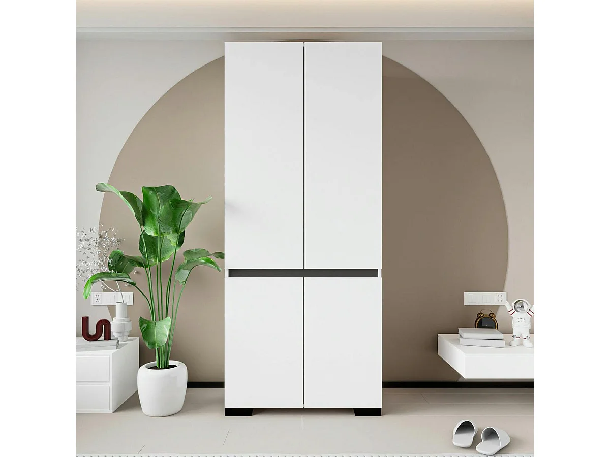 Armoire blanche 2 portes détail gris, 5 étagères BYRON