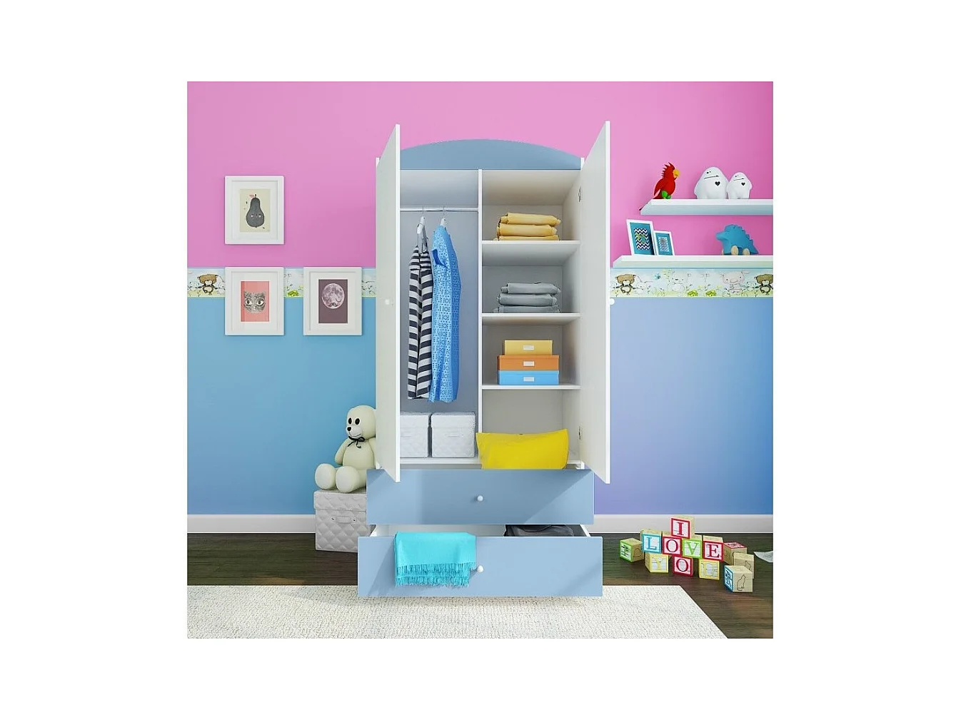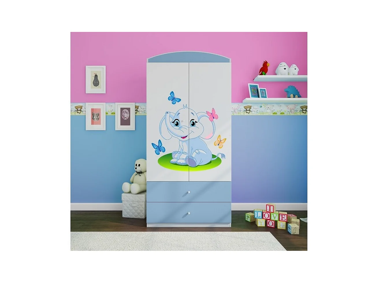 Armoire bleue 2 portes enfant petit éléphant Drimy