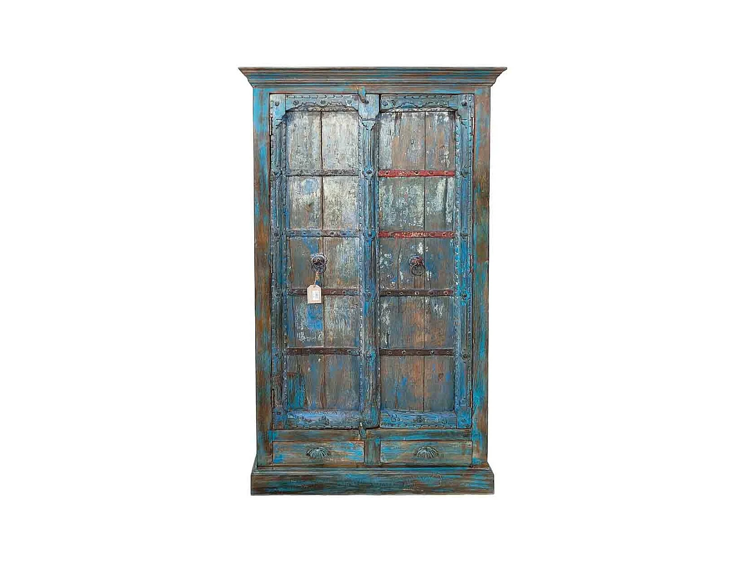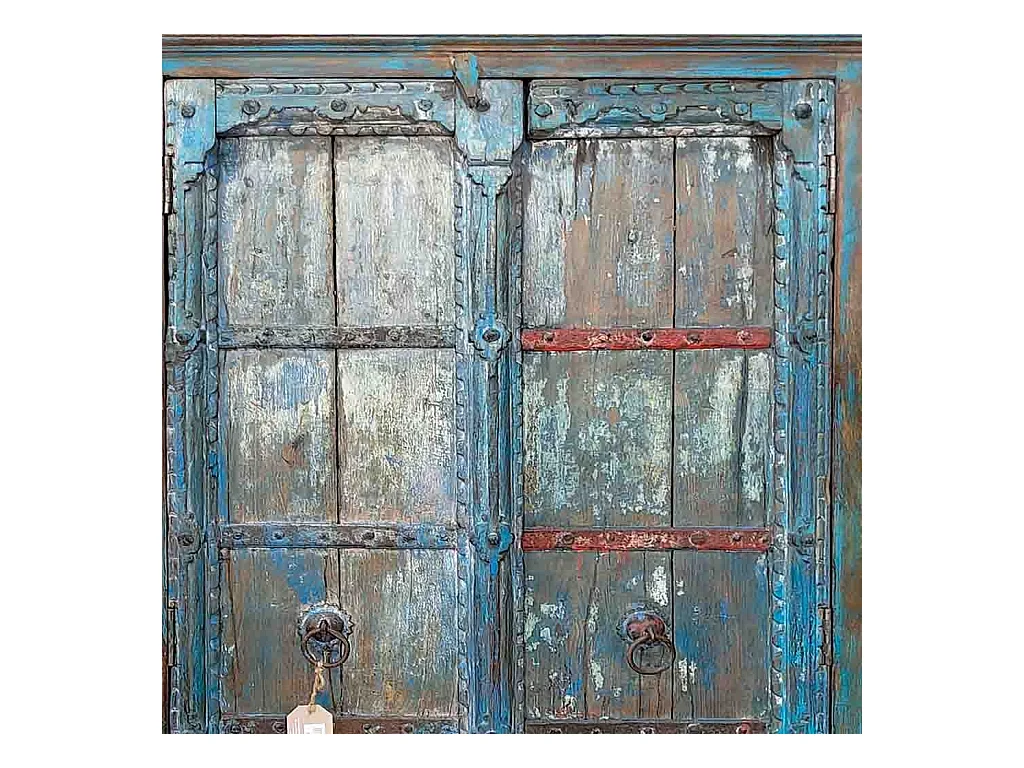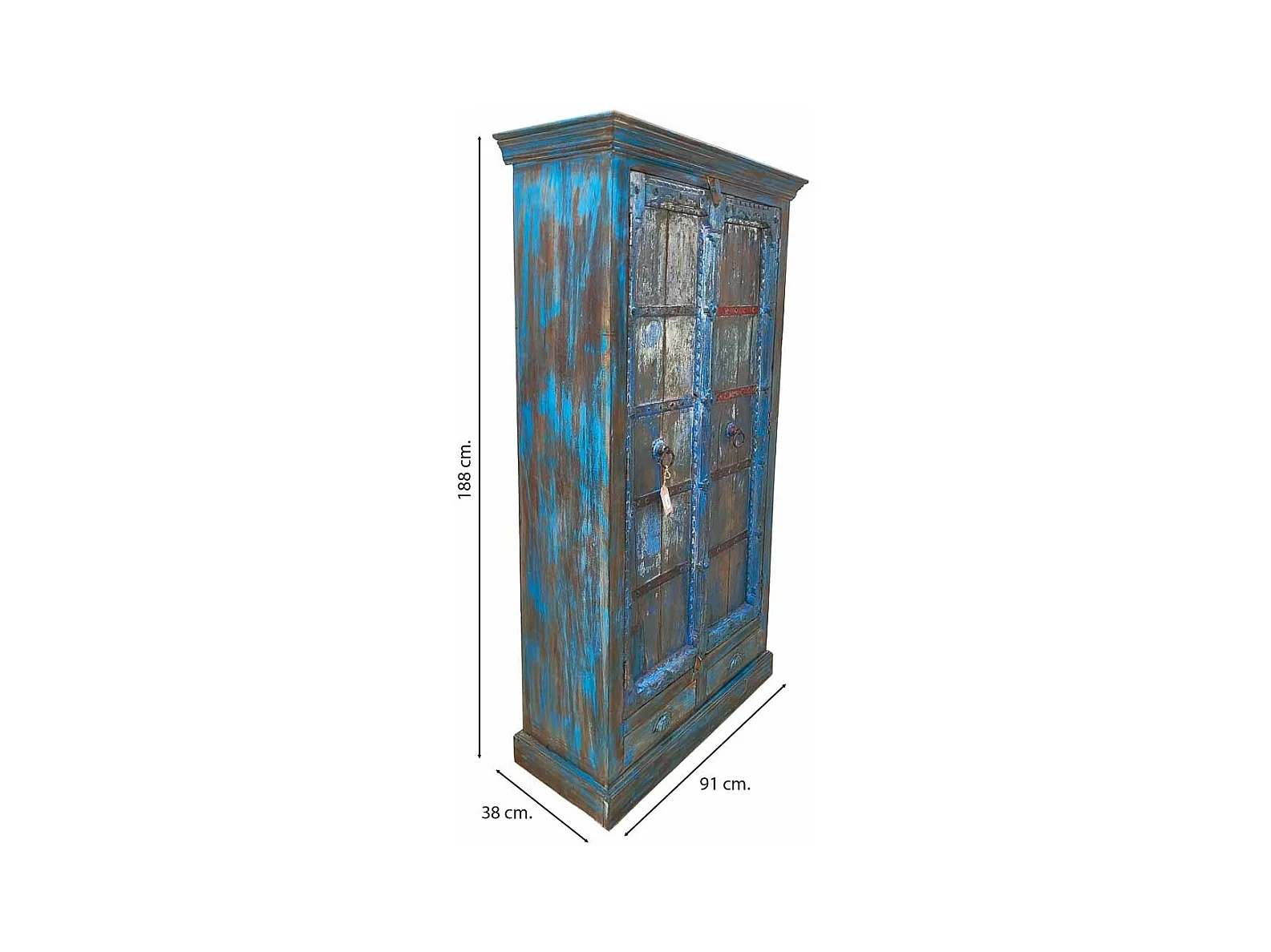 Armoire bleue artisanale en bois 91x38x188 (h)