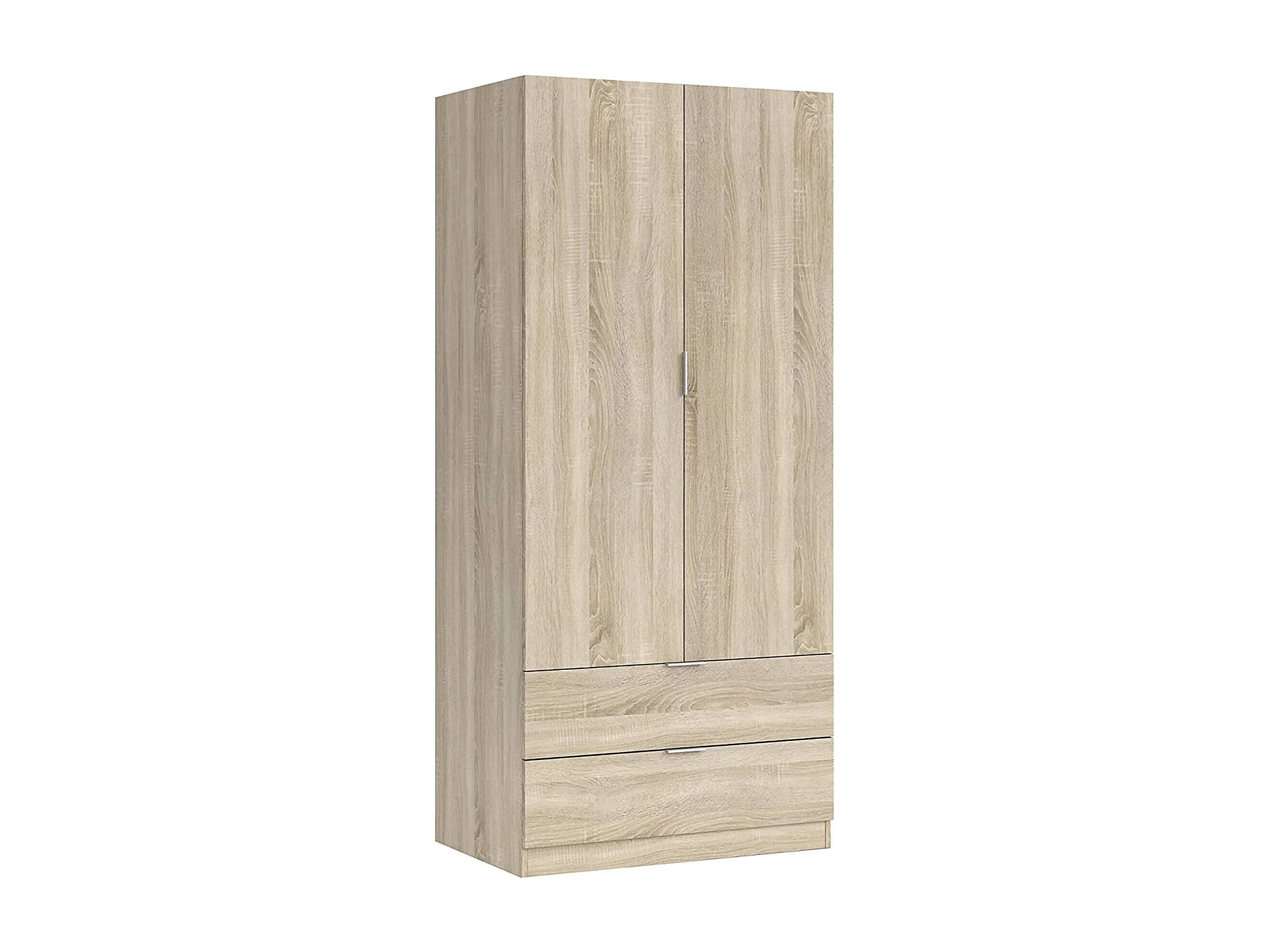 Armoire Burbank, Armoire de chambre avec 2 portes et 2 tiroirs, Meubles de chambre avec penderie, 81x52h180 cm, Chêne