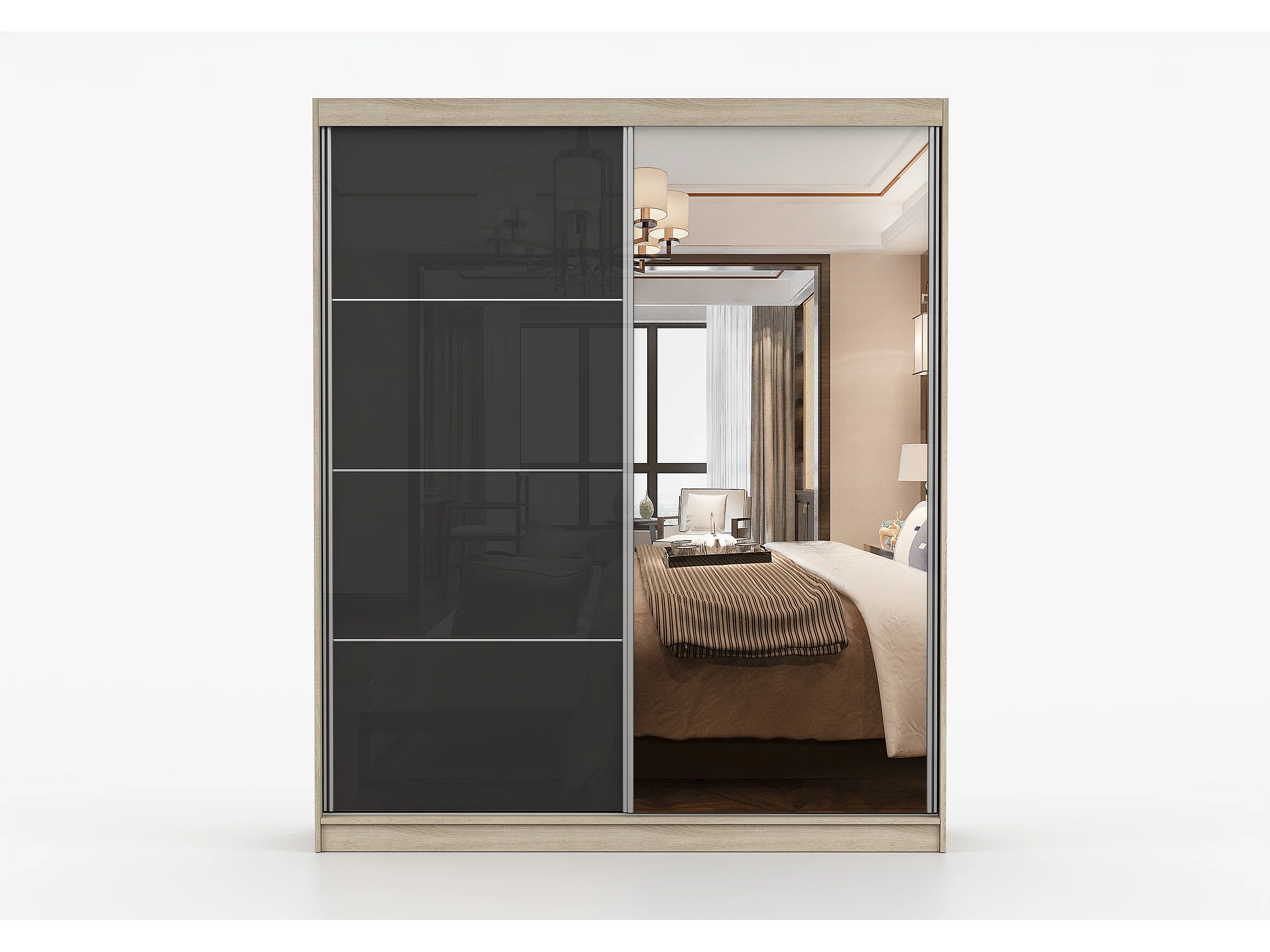 Armoire Calypso 183 cm avec miroir - Chêne - Noir
