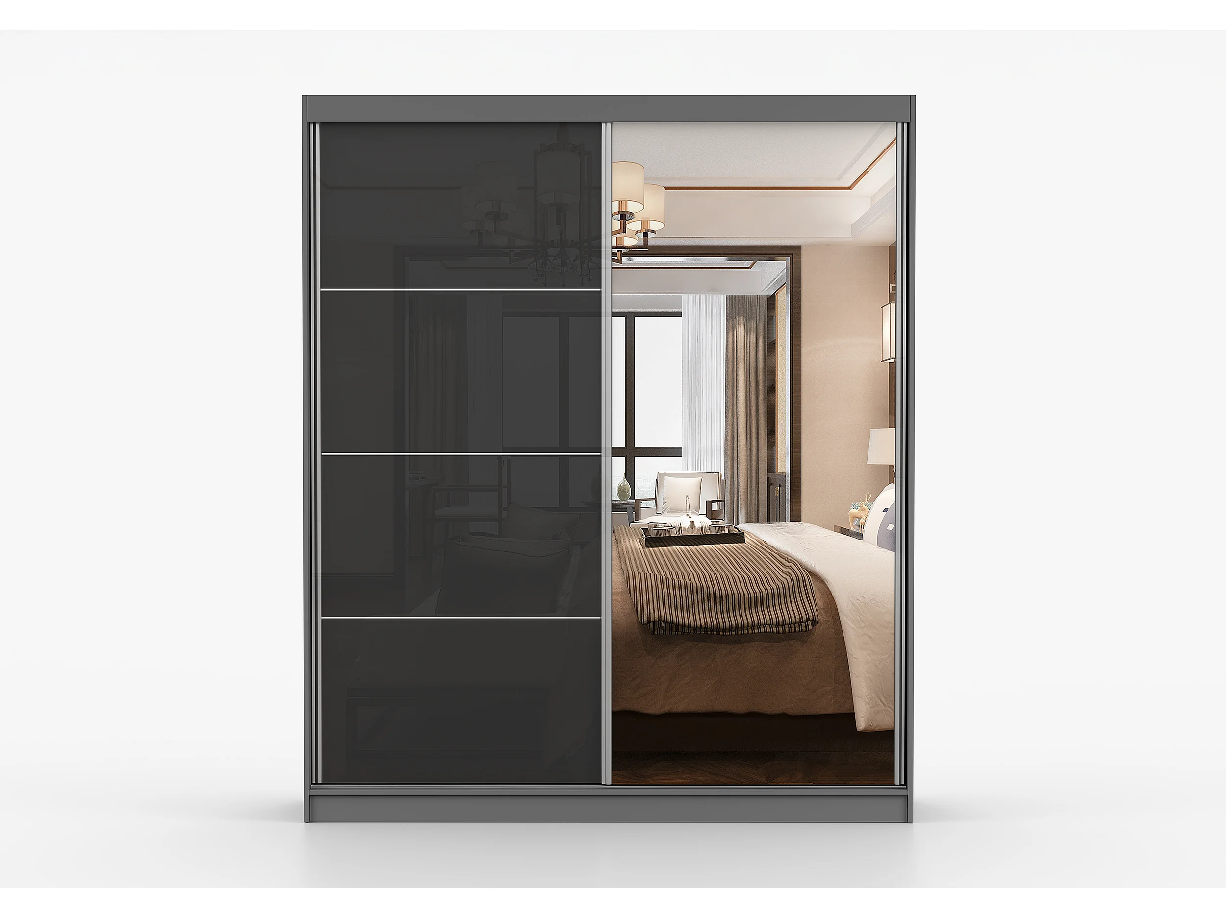 Armoire Calypso 183 cm avec miroir - Gris - Noir