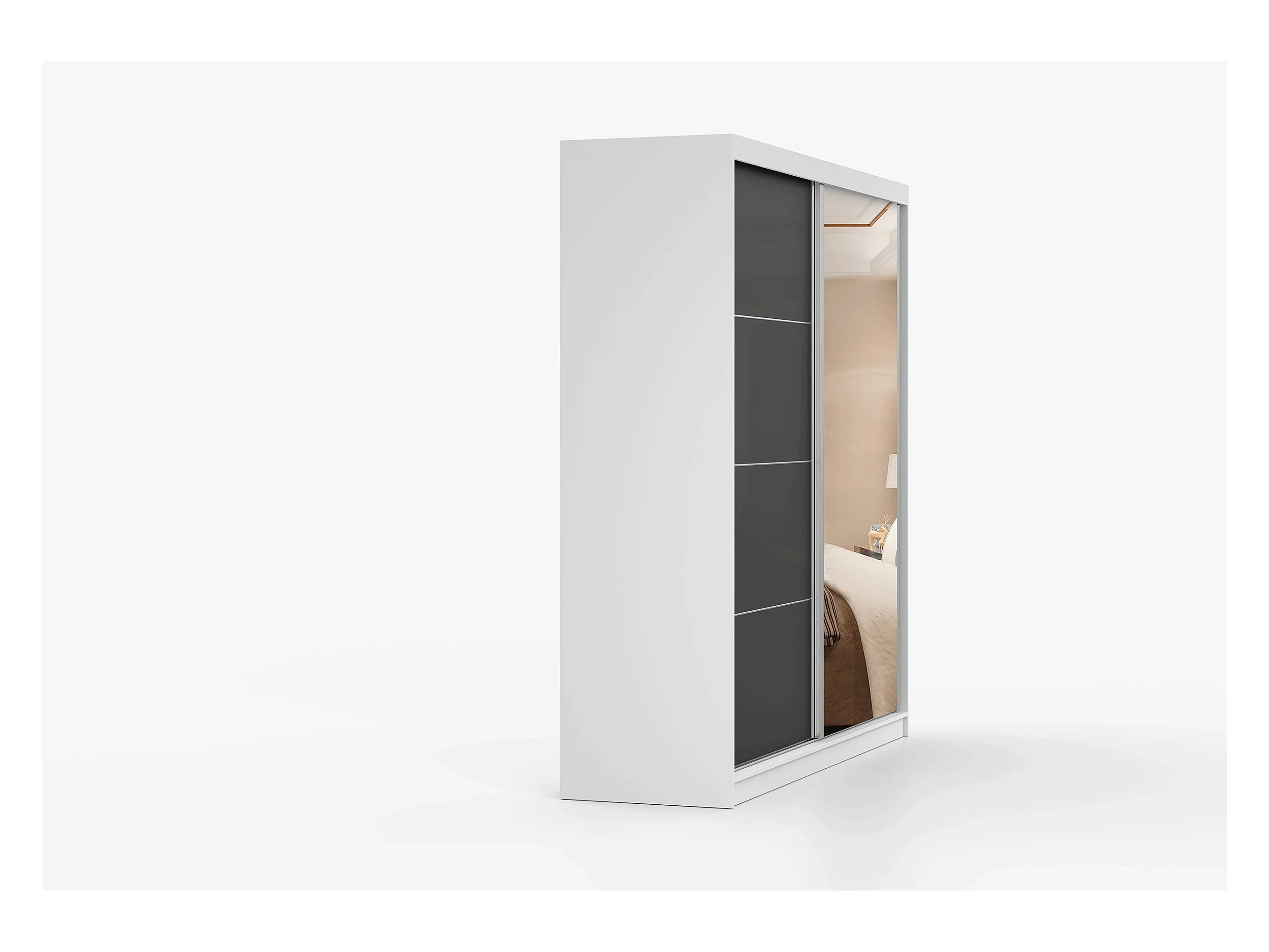 Armoire Calypso 203 cm avec miroir - Blanc - Noir