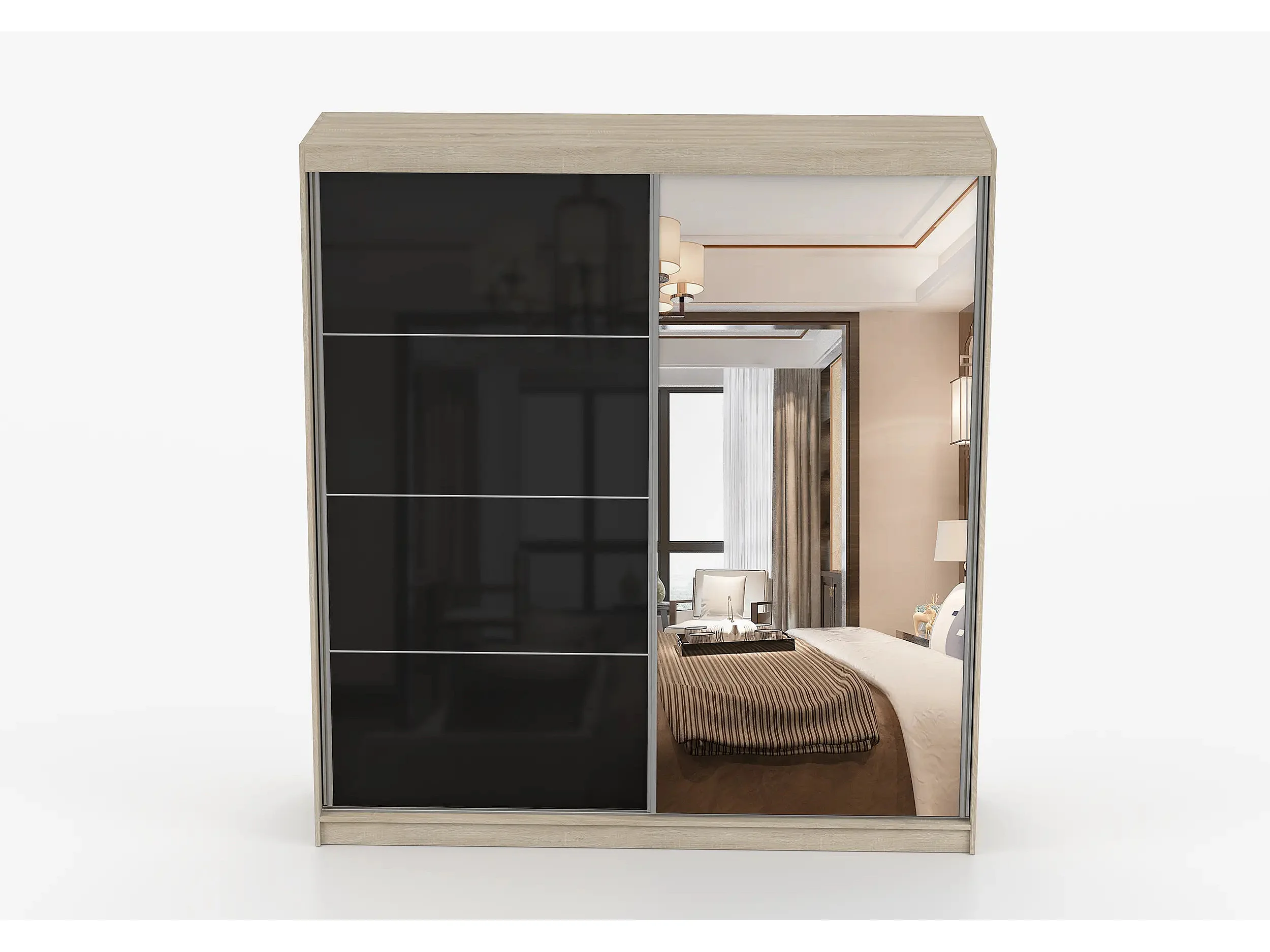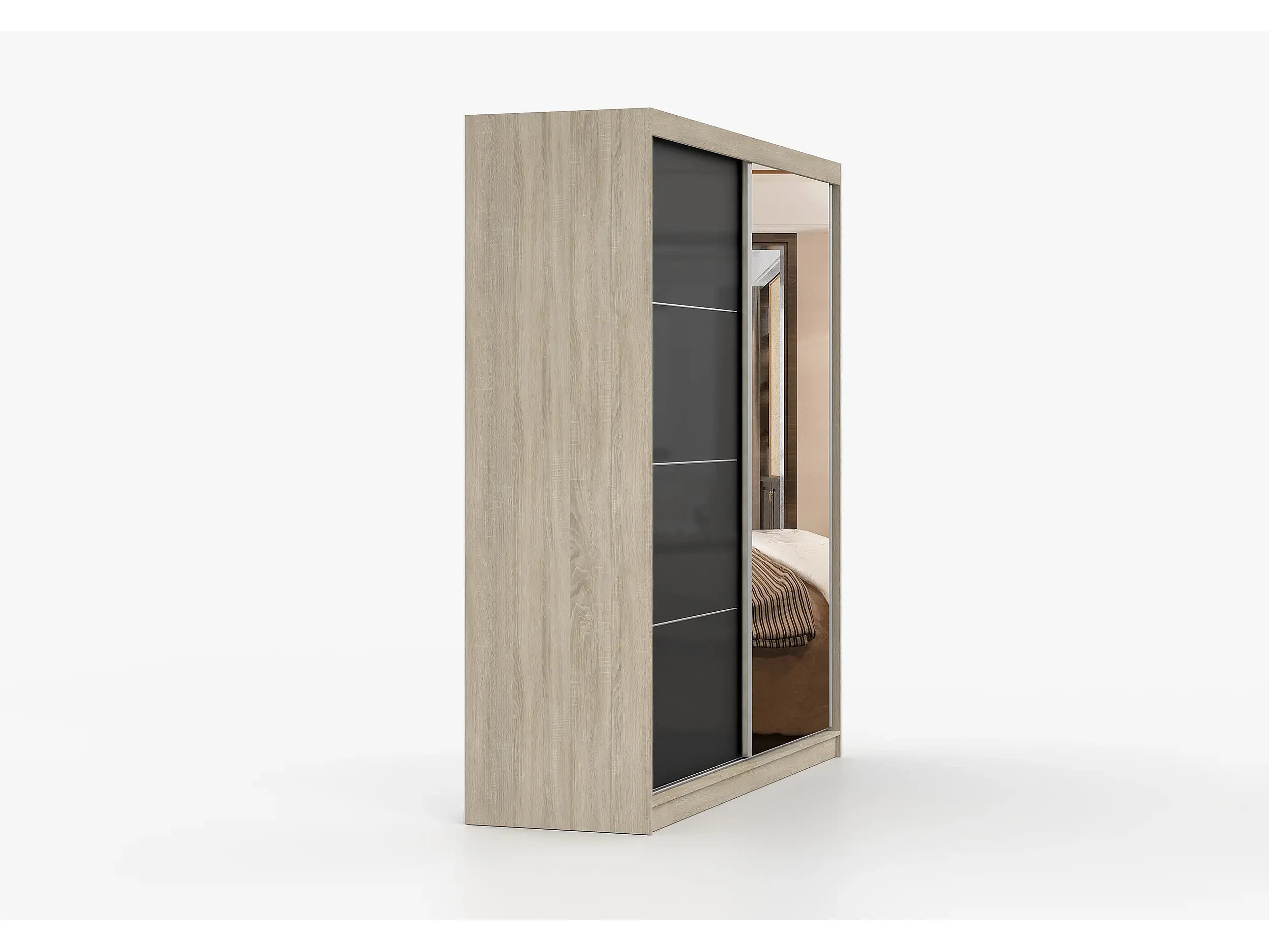 Armoire Calypso 233 cm avec miroir - Chêne - Noir