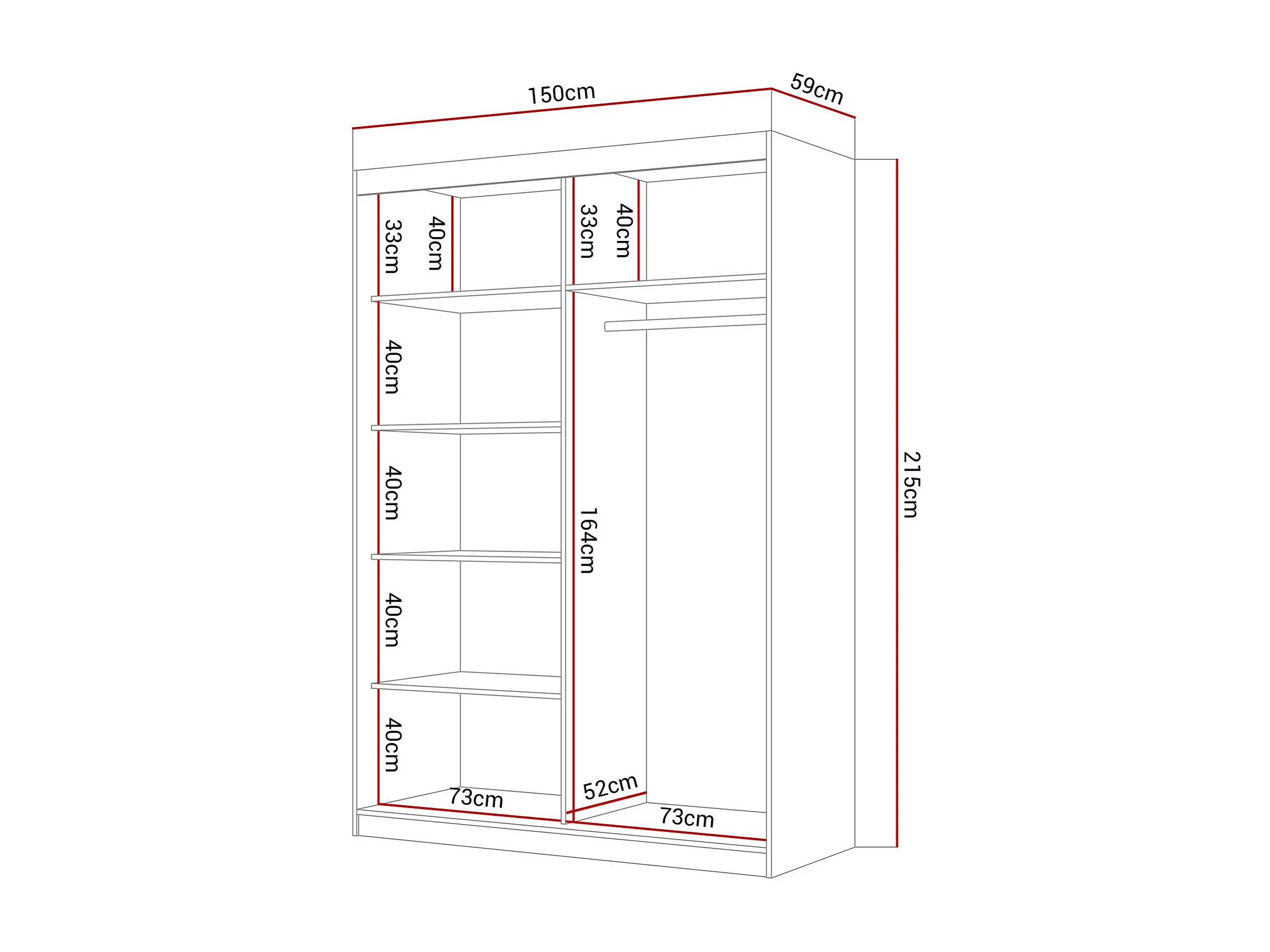 Armoire CAMARO II 150 cm avec miroir, Noir